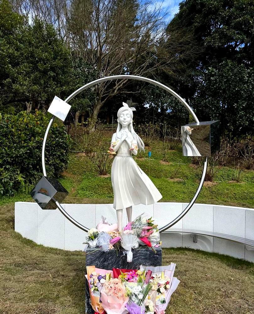 花了310万给大S修的雕像,揭幕当天就被全网狂喷,说像个超市门口的迎宾娃娃。 你都想不到,具俊晔卖摩托、卖设备凑的钱,守着工地搞了10个月,最后就这?圆脸,小眼,闭着眼微笑,网友说连高以翔雕像的脚指头都比不上。碑文刻的还是韩文情诗,连俩孩子的名都没提。 他把所有心思都藏在细节里。9级台阶,S形,面朝101大楼,全是他俩的密码。可大家不买账,说你这怀念的是你的初恋女友,我们怀念的是那个当妈的、杀伐果断的大S。 他要留住的,是那个绑蝴蝶结的初恋少女;大众想看到的,是那个叱咤风云的美容大王。这根本不是一座雕像,这是两种记忆的战场。