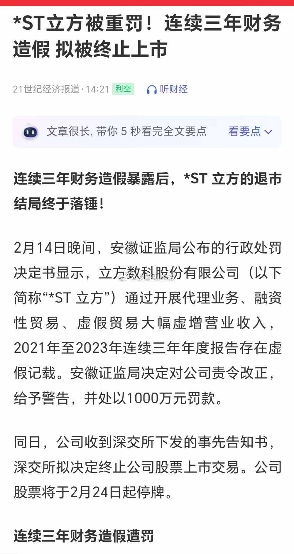 又一上市公司因财务造假被终止上市,年后即将和我们挥手告别,相信这种情况后续会常态