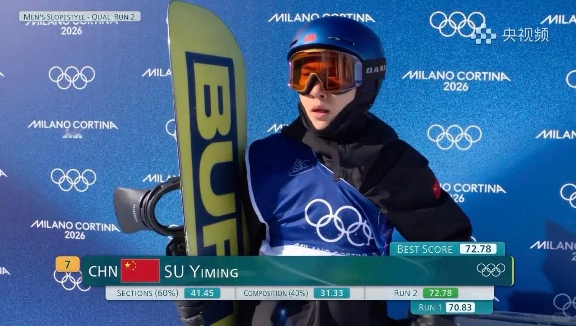 单板滑雪男子坡障技巧预赛叠穿技巧 苏翊鸣第二轮稳定发挥,拿下72.78分!两轮成绩:70.83分→72.78分,取最佳72.78分,稳稳晋级决赛!