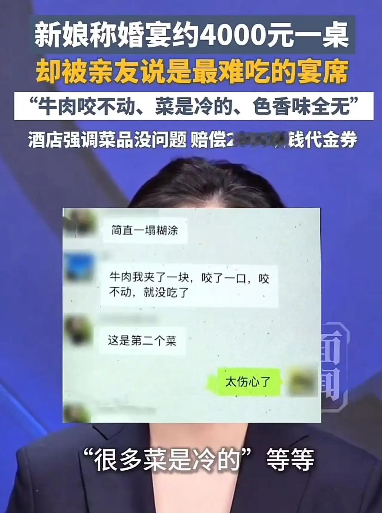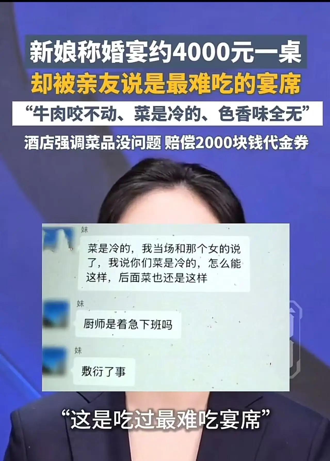 4000元一桌婚宴成“笑柄”,高价背后是期待与现实的落差 近日,一位新娘满心欢