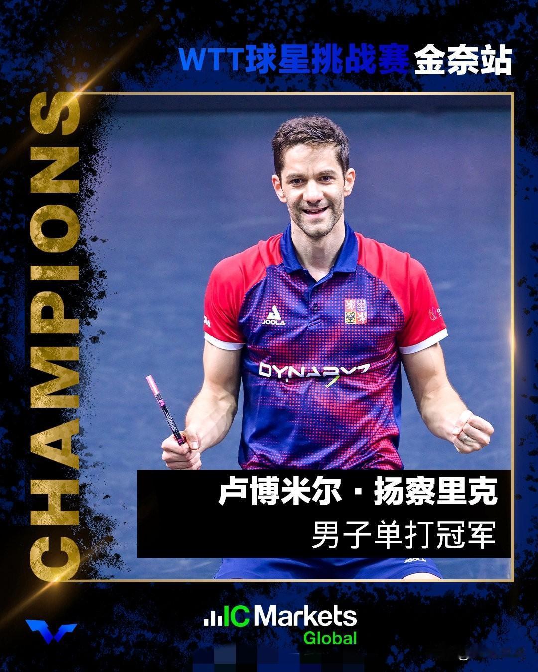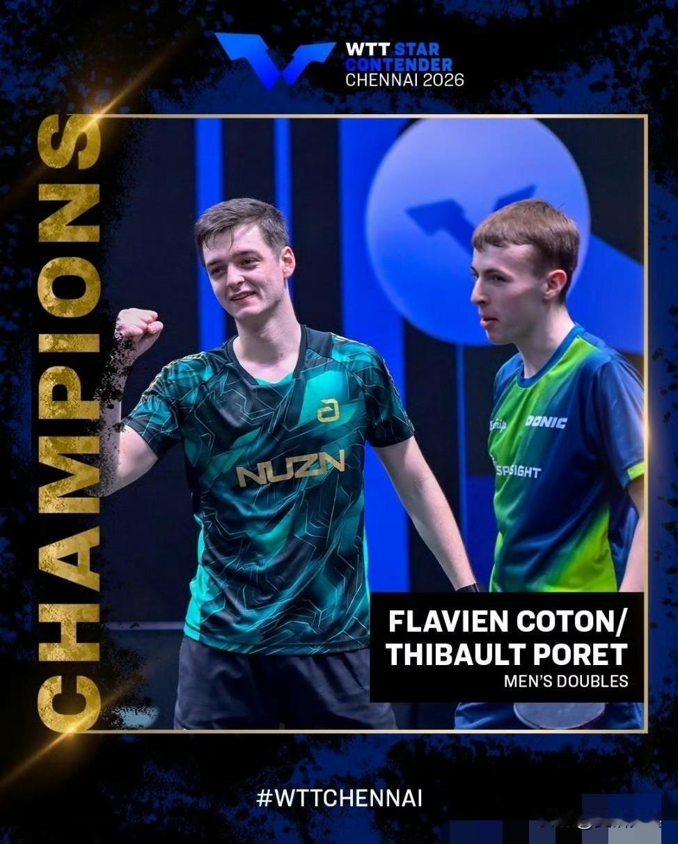 金奈站赛果! WTT球星挑战赛金奈站2026 一、男单 冠军:卢博米尔·扬察里克🇨🇿 亚军:迪博·泊雷特🇫🇷 四强:弗拉维安·科顿🇫🇷 朴康贤🇰🇷 二、女单 冠军:大藤沙月🇯🇵 亚军:平野美宇🇯🇵 四强:郑怡静(中国台北) 横井咲樱🇯🇵 三、男双 冠军:泊雷特/科顿🇫🇷 亚军:林钟勋/吴晙诚🇰🇷 四强:加纳纳塞卡兰/德赛🇮🇳 巴特查尔吉/贾恩🇮🇳 四、女双 冠军:横井咲樱/青木咲智🇯🇵 亚军:柳汉娜/金娜英🇰🇷 四强:德·努特🇱🇺/戈什🇮🇳 纳兰/帕特尔🇮🇳 五、混双 冠军:E·约内斯库/斯佐科斯🇷🇴 亚军:德赛/格尔帕德🇮🇳 四强:贾恩/达斯🇮🇳 吴晙诚🇰🇷/长崎美柚🇯🇵