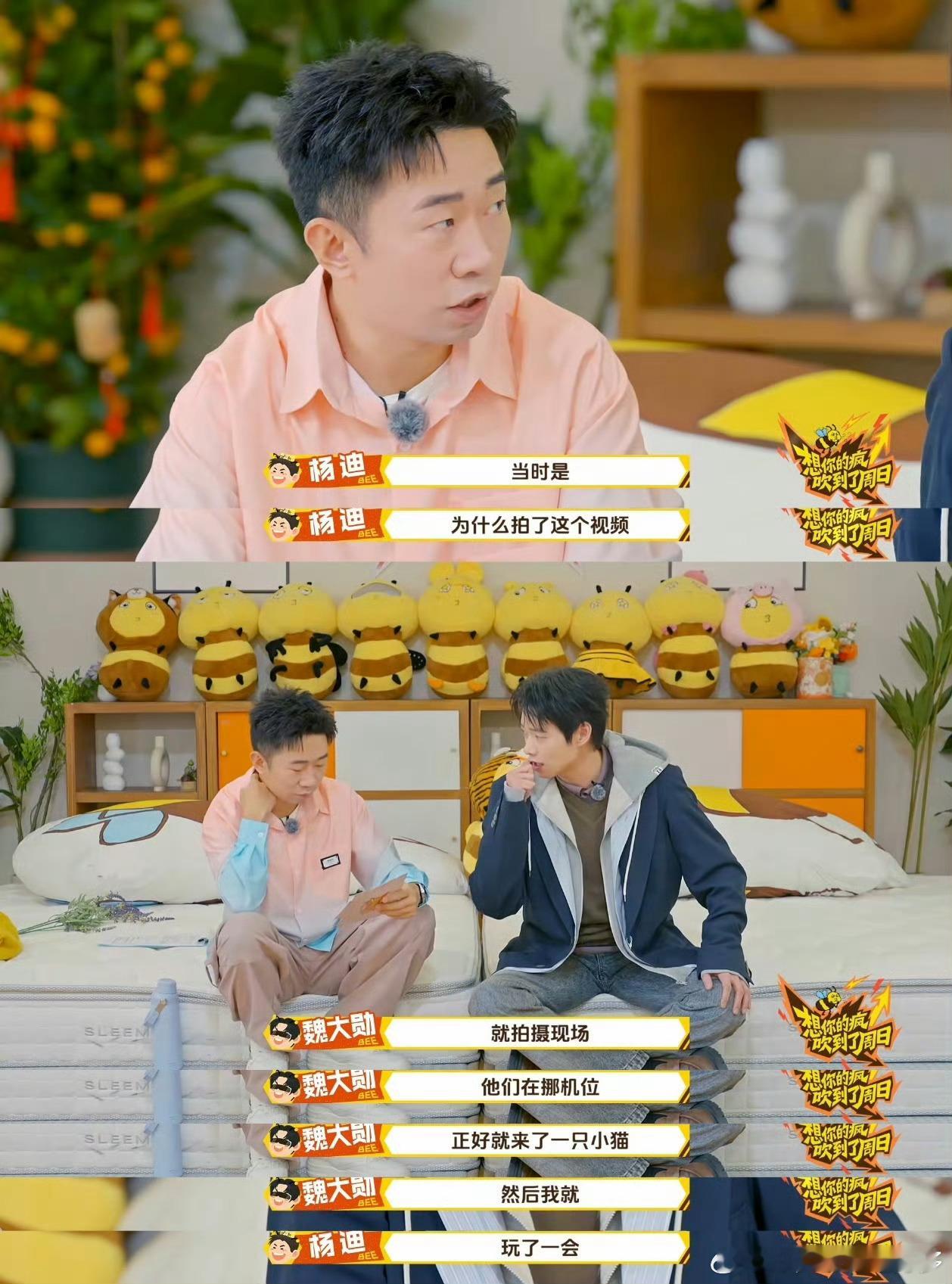 魏大勋还原摸猫神图名场面周五晚高疯 西装帅哥与小猫的温柔名场面封神!拍摄间隙的不