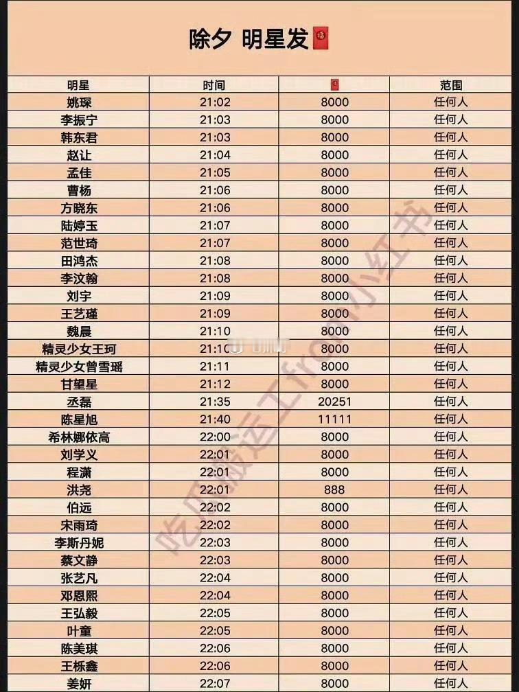除夕红包分组 2026红包分组除夕夜竟然有这么多明星发红包吗 那我可要蹲好了 大