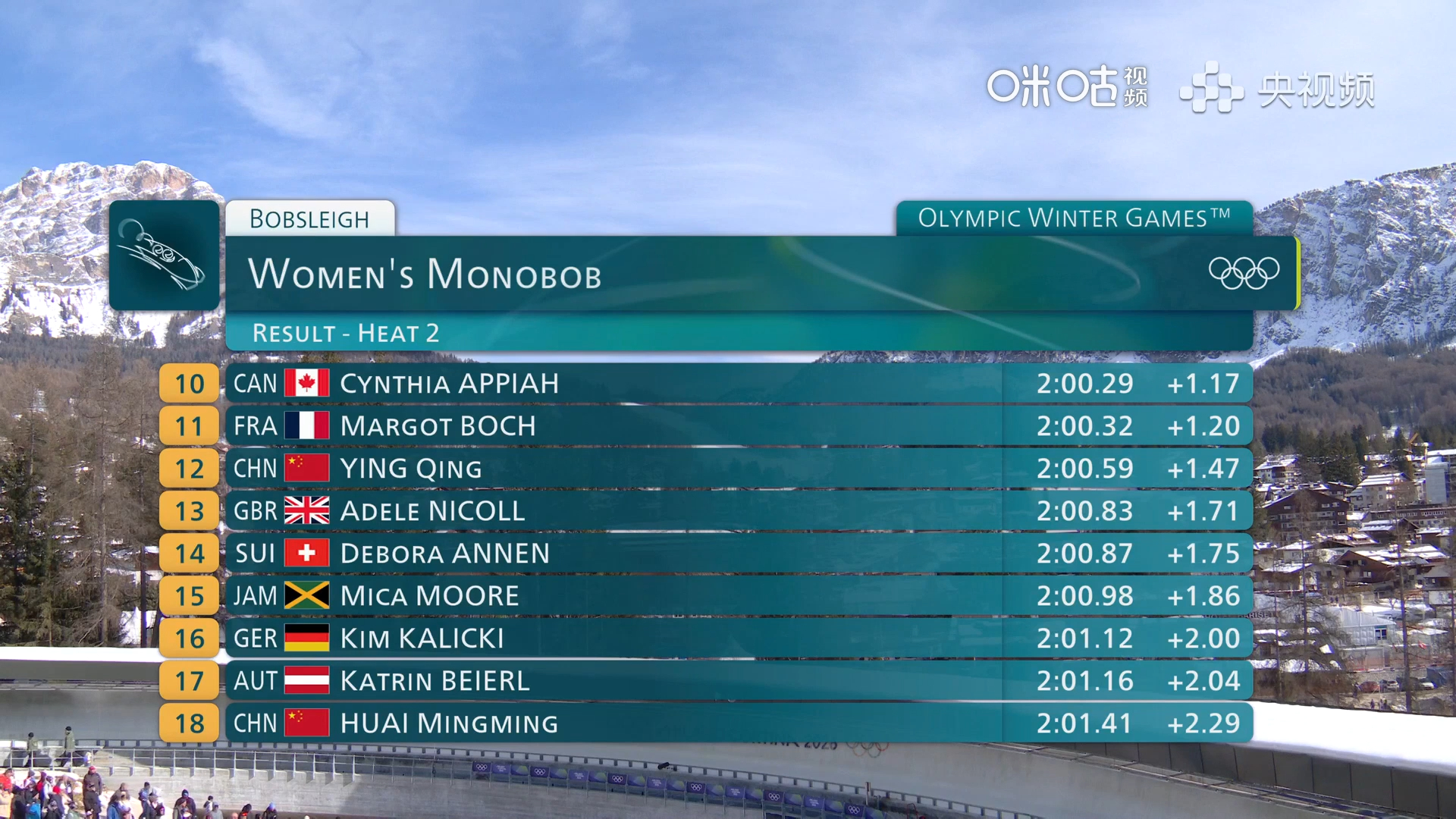 #怀明明女子雪车两轮后排名第18##应清女子雪车两轮后排名第12#