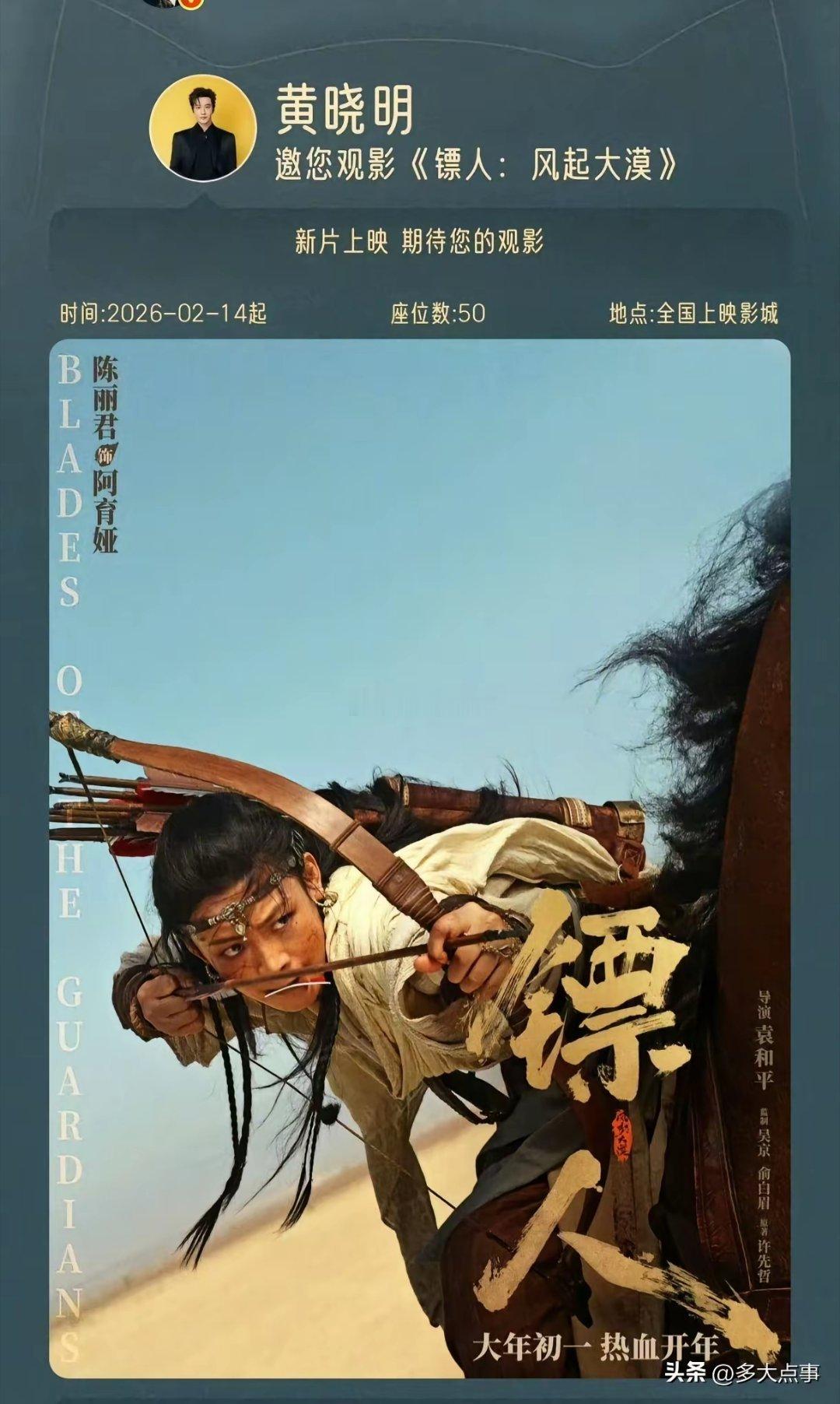 谁是2026电影春节档的赢家?都别争了,张艺谋、吴京、成龙都不够看,沈腾,马丽,韩寒, 谢霆锋也得待着,唯一的赢家那就是黄晓明!黄教主连发5条微博霸气包下50场观影票,《惊蛰无声》《飞驰人生3》《镖人:风起大漠》《星河入梦》《熊猫计划之部落奇遇记》,五部新片各宠10场。别人为春节档吆喝靠宣发,黄晓明直接用实力撑腰,张艺谋、韩寒、袁和平的作品全安排,半个娱乐圈好友的新片统统被他力挺。谍战、武侠、科幻、合家欢喜剧全覆盖,题材跨度大却一碗水端平,这份格局直接看呆网友,评论区全是花式夸夸。刘诗诗、沈腾、吴京等主创纷纷留言致谢,老友间的暖心互动拉满氛围感,网友则集体蹲守抢票通道,求票评论刷满屏。2026春节档票房竞争再激烈,黄晓明这波操作直接出圈,不靠作品靠人缘,成为春节档最大的惊喜赢家! 黄晓明,你这是想整哪一出啊?