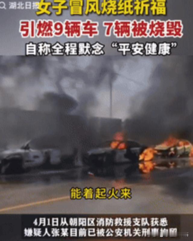 “闯大祸了!”北京朝阳,一44岁女子冒风在路边烧纸祈福,“金元宝”燃烧的过程中,女性全程默念“平安健康”,烧完纸后,女子用棍子简单扒拉一下就离开了现场,没想到,纸钱的残火竟然引燃了9辆车,其中7辆被烧毁,网友:这孩子真孝心,别人烧假的,她烧真的! 信源:湖北日报4月1日报道 站在那排被烧黑的车架前,很难把它和“保佑平安”,这种话联系到一起,车壳扭曲、轮胎只剩钢圈,车窗玻璃全没了,地上还能看到被高温烤化后,凝固的塑料痕迹。 那是北京的冬夜里发生的事,天气本来就干,风又大,火一旦起来就特别容易失控。 事发地点在朝阳区一处相对偏的路段,但并不是荒地,路边停着不少私家车,车挨车、间距小,平时图的就是方便。 结果这天夜里,七辆车烧到只剩框架,另外两辆虽然没烧成空壳,但被烟熏火烤后,也基本失去维修价值,起因不是交通事故,也不是电路自燃,而是一次夜间祭祀用火没处理干净。 按报道描述,当事人王丽(化名)44岁,白天忙,错过了母亲忌日的祭拜时间,很多人对这种事会有心理压力,觉得“当天不去心里不踏实”,于是她选择晚上补上。 她骑电动车到居民区附近,找地方烧纸,可能觉得路边空一点、没人管,烧完就走,不会出问题。 问题在于,她选的地方,刚好在停放车辆的区域旁边,周围可燃物又多——冬天落叶、纸屑、塑料包装随便一吹就到处跑,这种环境本身就不适合明火。 她点燃了金元宝、纸钱之类的祭品,烧的时间不算短,大概十来分钟,期间她一边守着,一边念叨着希望家里平安健康之类的话。 很多人做这种仪式时,都会有一种错觉:火在自己眼前、自己在看着,就等于安全,但实际风险往往出在“以为烧完了”的那几分钟。 她准备离开时,纸灰里已经看不到明显的火苗,只剩忽明忽暗的红点和余温,她没有用水浇,也没有彻底踩灭,更没有把灰烬装走处理,而是随手捡了根树枝拨了几下,觉得“差不多了”,就走了。 这个动作看起来很随意,但在大风、干燥、周围又紧挨车辆的情况下,等于把隐患留在了原地。 后面的过程其实不复杂:余火被风一吹,会把带火星的炭渣卷起来,火星落到哪里不一定,但一旦钻进车底那种角落,就很容易起势。 车底附近常见的东西太多了:干落叶、积尘、塑料碎片,有的地方还有油污,风在底盘下形成“助燃”的效果,火苗能沿着底部慢慢爬起来,先冒烟,接着起明火,温度上来后,就会出现更大的燃烧点。 车辆停得密,火一旦烧到一辆车的关键部位,旁边的车很快就会被波及,形成连续燃烧。 从结果看,这是典型的“由小到大”的连锁事故:最开始可能只是灰堆里一点点余火,最后变成多车受损。 真正让人后怕的是,这种火灾如果发生在更靠近居民楼、或者有人深夜经过的地方,风险不仅是财产损失,还可能威胁人身安全。 据描述,当事人并不是完全没察觉,她在几百米外可能听到动静或看到火光,回头发现不对劲。 但她没有第一时间报警,也没有喊人帮忙,而是选择离开现场,可以理解她当时害怕、慌乱,但从后果上说,这等于错过了最关键的处置窗口。 火灾早一分钟报警、早一分钟有人拿灭火器或水源压一压,结果可能都会不一样。 在北京这种监控覆盖较高的城市,事后追查并不难,警方调取周边监控后,锁定了她的行动轨迹,上门后她情绪崩溃,说自己“没想到会这样”。 但“没想到”并不能免除责任:一方面涉及过失引发火灾的法律后果,另一方面是民事赔偿,几块几十块的纸钱,最后对应的是九辆车的损失,这种落差会把一个家庭的经济彻底拖垮。 这类事件之所以引发讨论,是因为它不是“极端小概率”,而是每年都会重复出现的风险点。 报道里提到北京消防系统,统计过因祭扫引发的火灾案例,说明它不是个别人的倒霉,而是习惯叠加侥幸心理,造成的事故高发类型。 很多人觉得“我就在路边烧一点”“我看着呢”“没火苗就算灭了”,但在冬季大风、干燥、可燃物密集的环境下,这些判断经常不可靠。 更现实的一点是,城市空间已经不是过去那种,空旷院落或田埂边,现在到处是车、是绿化带、是垃圾桶、是电动车、是居民楼。 明火一旦失控,烧到的往往不是“自己的东西”,而是邻居的车、公共设施,甚至是更严重的后果。 纪念逝者当然是人之常情,但方式如果带来对他人财产和公共安全的风险,就很容易从“心意”变成“事故”。 说到底,这起事件最刺人的地方在于:她本意是求家人平安,最后却把别人的生活,搅进了灾难里,也把自己的日子推到了悬崖边,对任何人来说,这都是最不划算、也最难承受的代价。