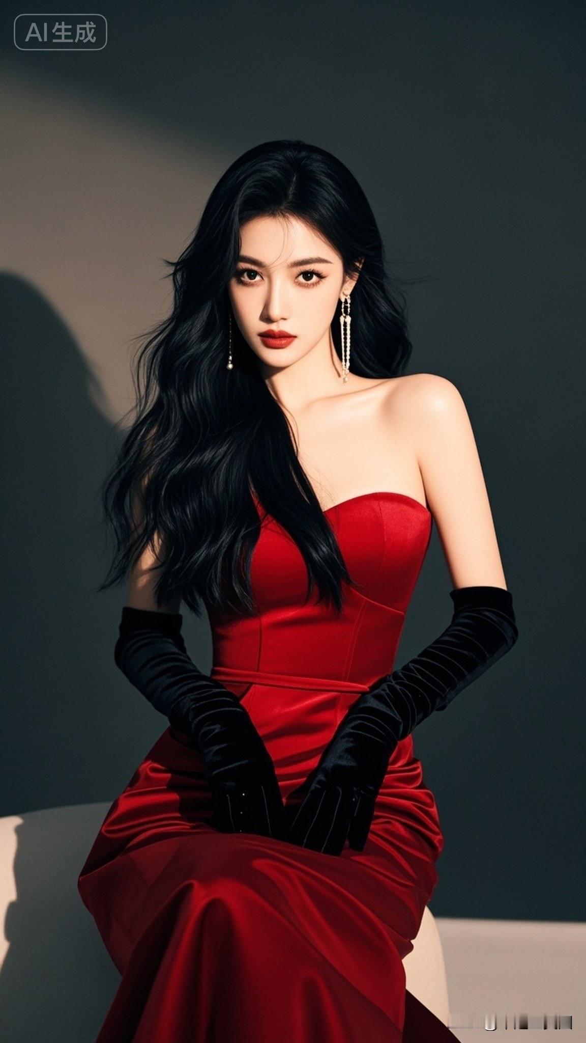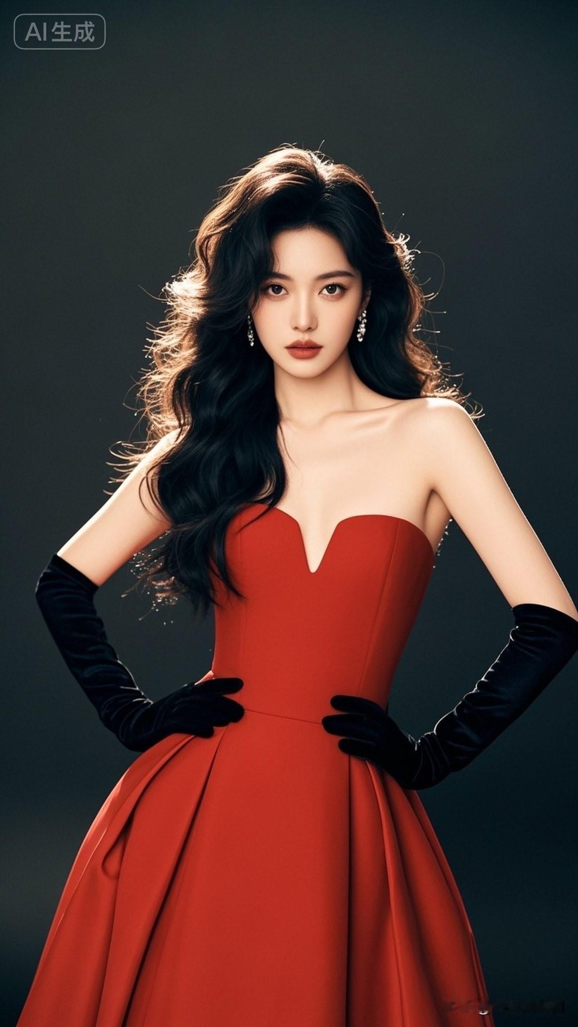 红裙黑发,优雅动人,复古风十足!🌹👗💄