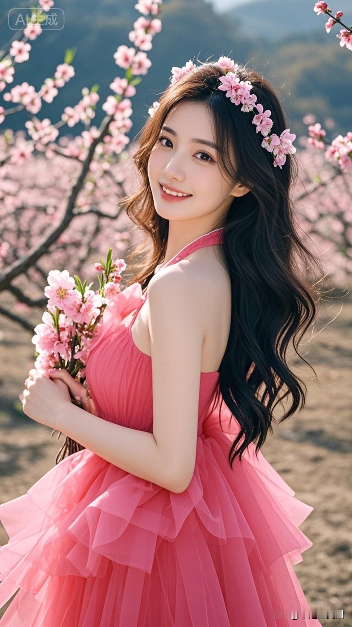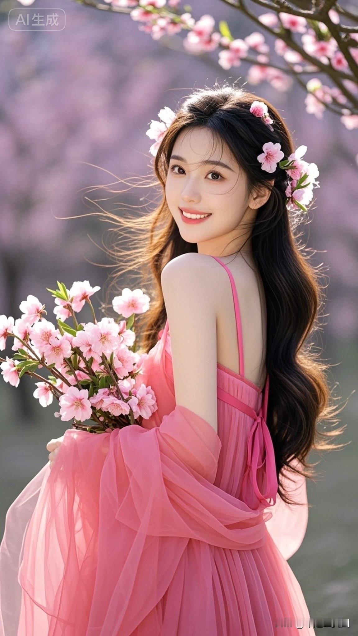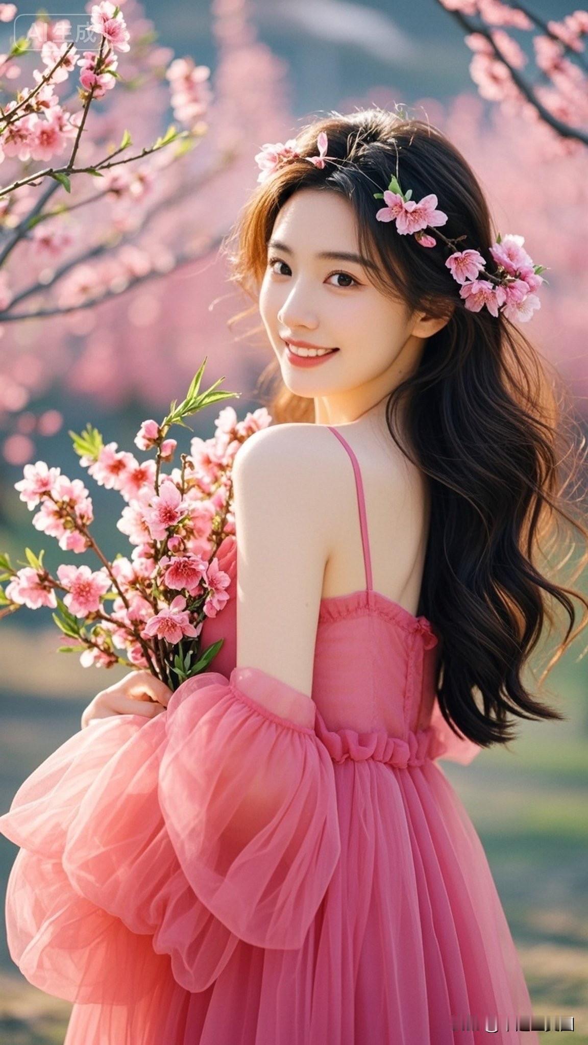 樱花树下,粉裙少女,笑靥如花🌸💕