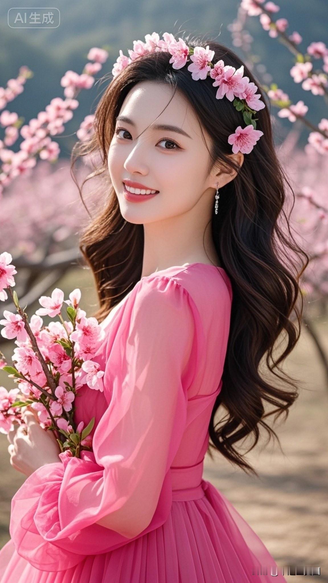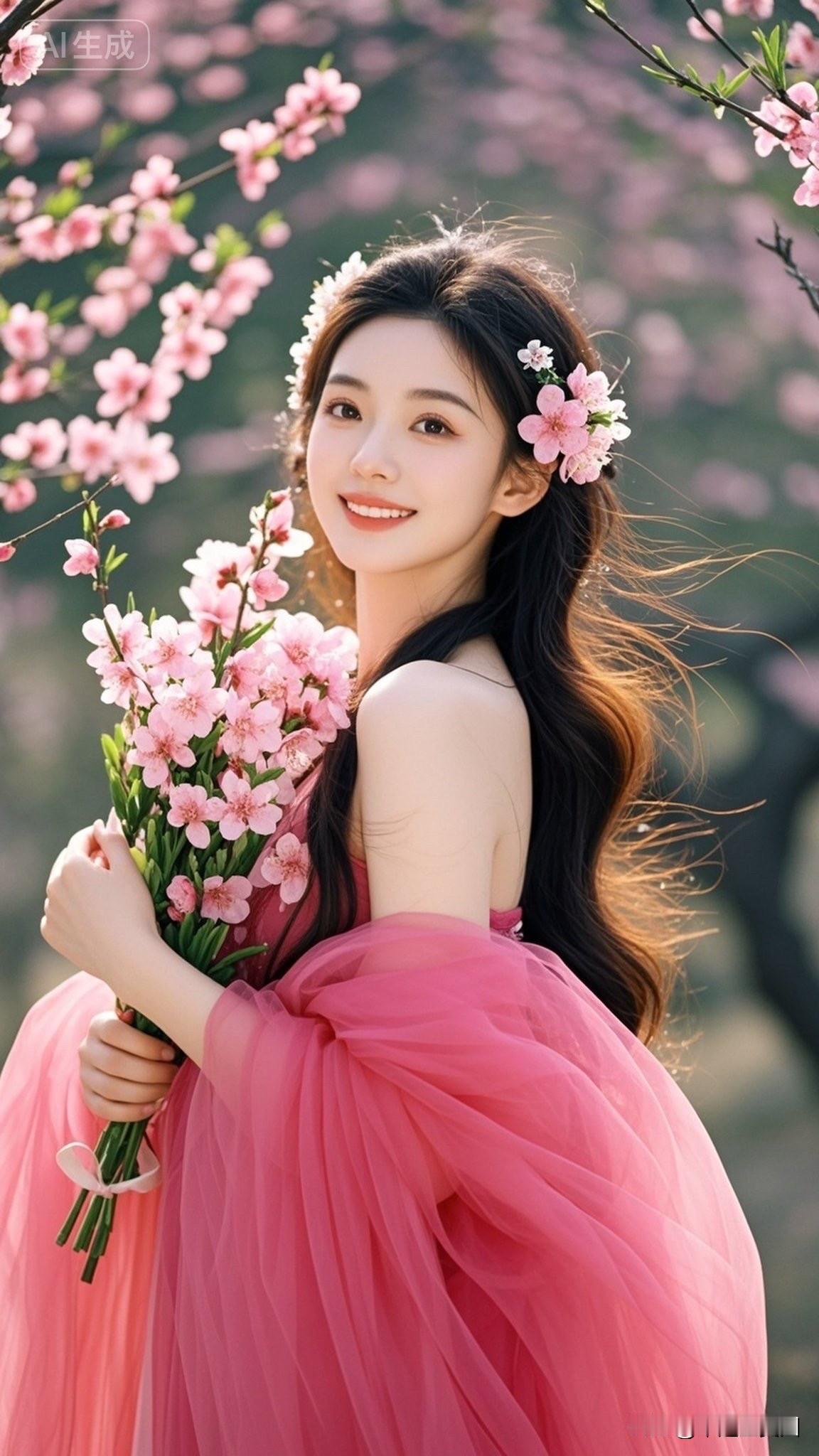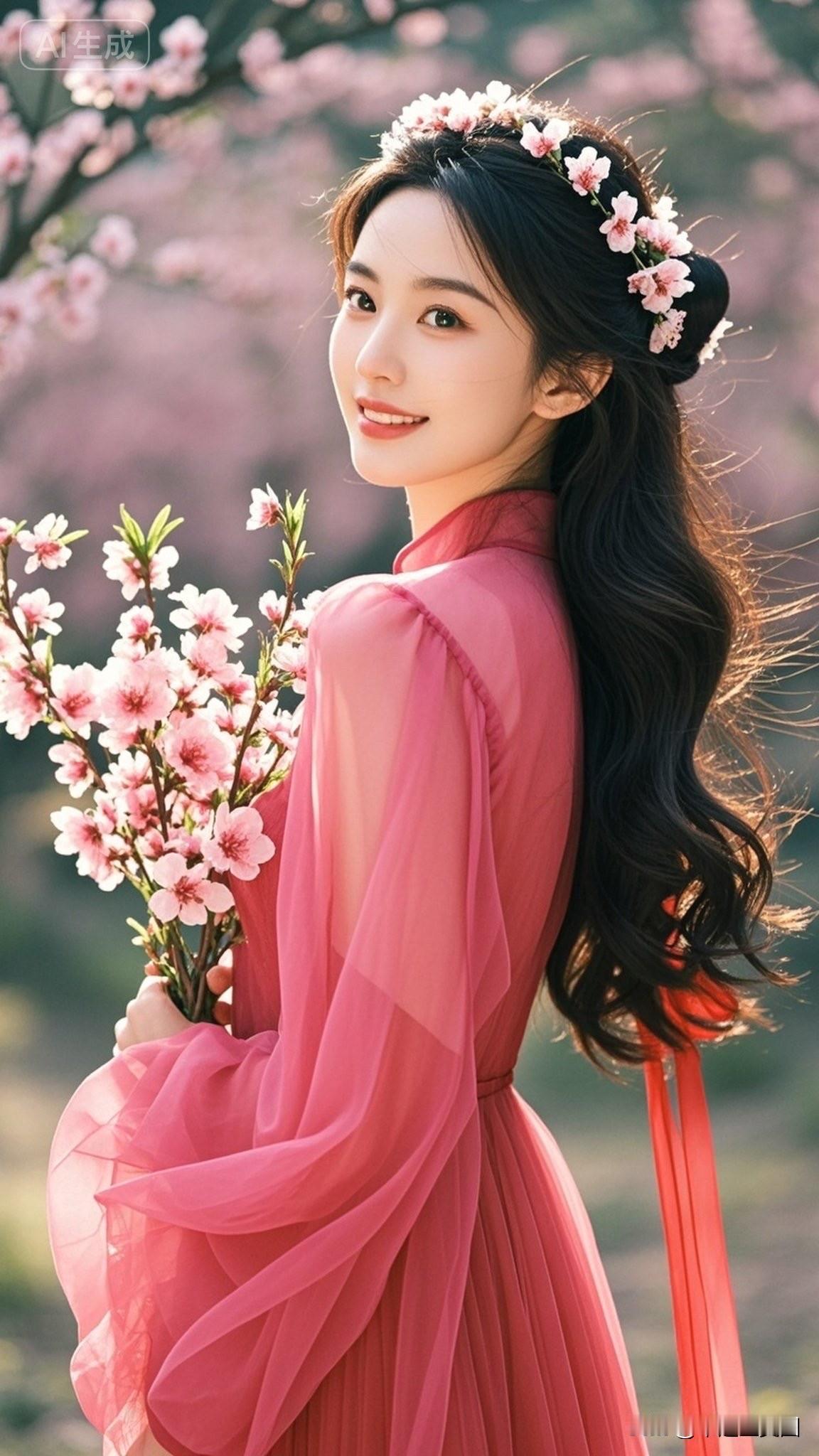 樱花树下,粉裙少女,笑靥如花🌸💕