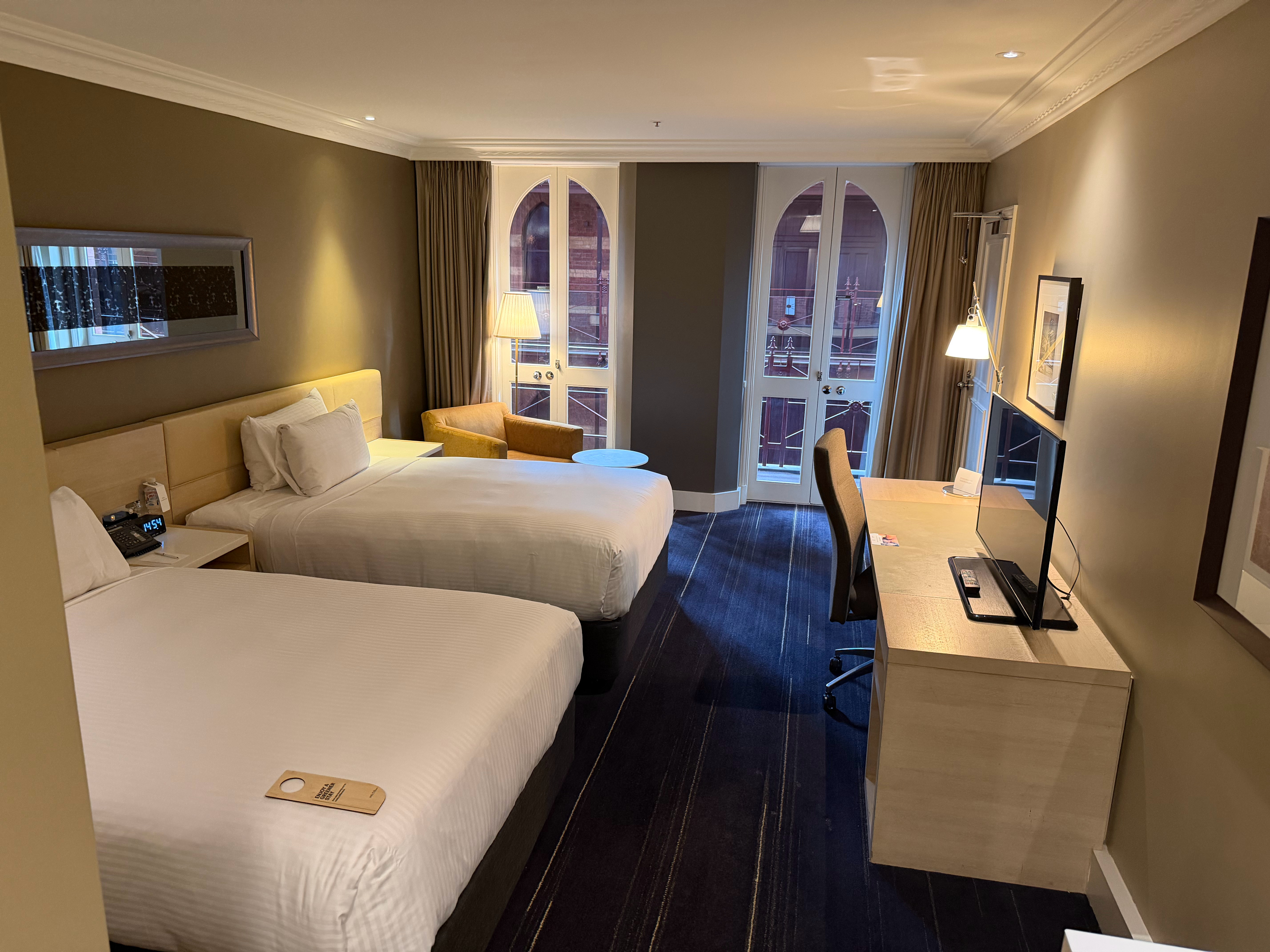 墨尔本住的酒店,在市中心,洲际,两间房连通的可以睡5个人,停车费一天我尼玛400块