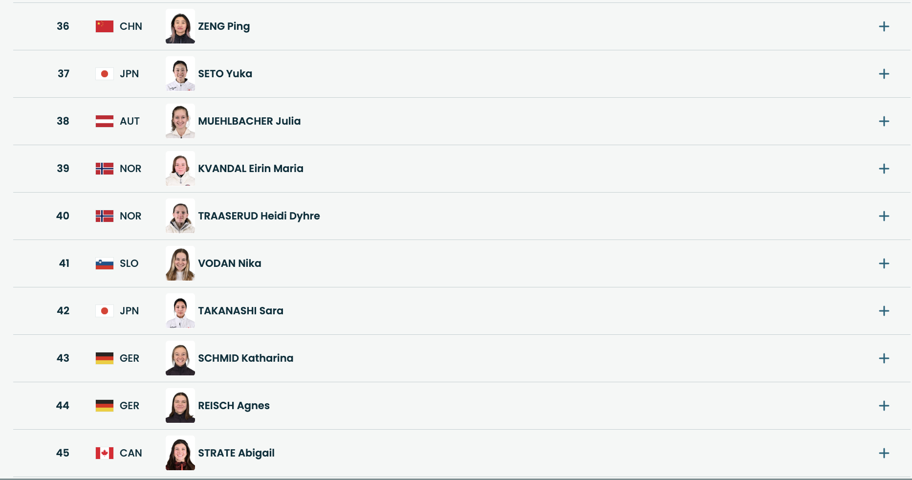跳台滑雪女子个人大跳台第一轮,🇨🇳中国四名选手参赛,分别是8号翁杨宁、16号刘奇、19号董冰、36号曾坪,来为中国姑娘们加油吧⛽️