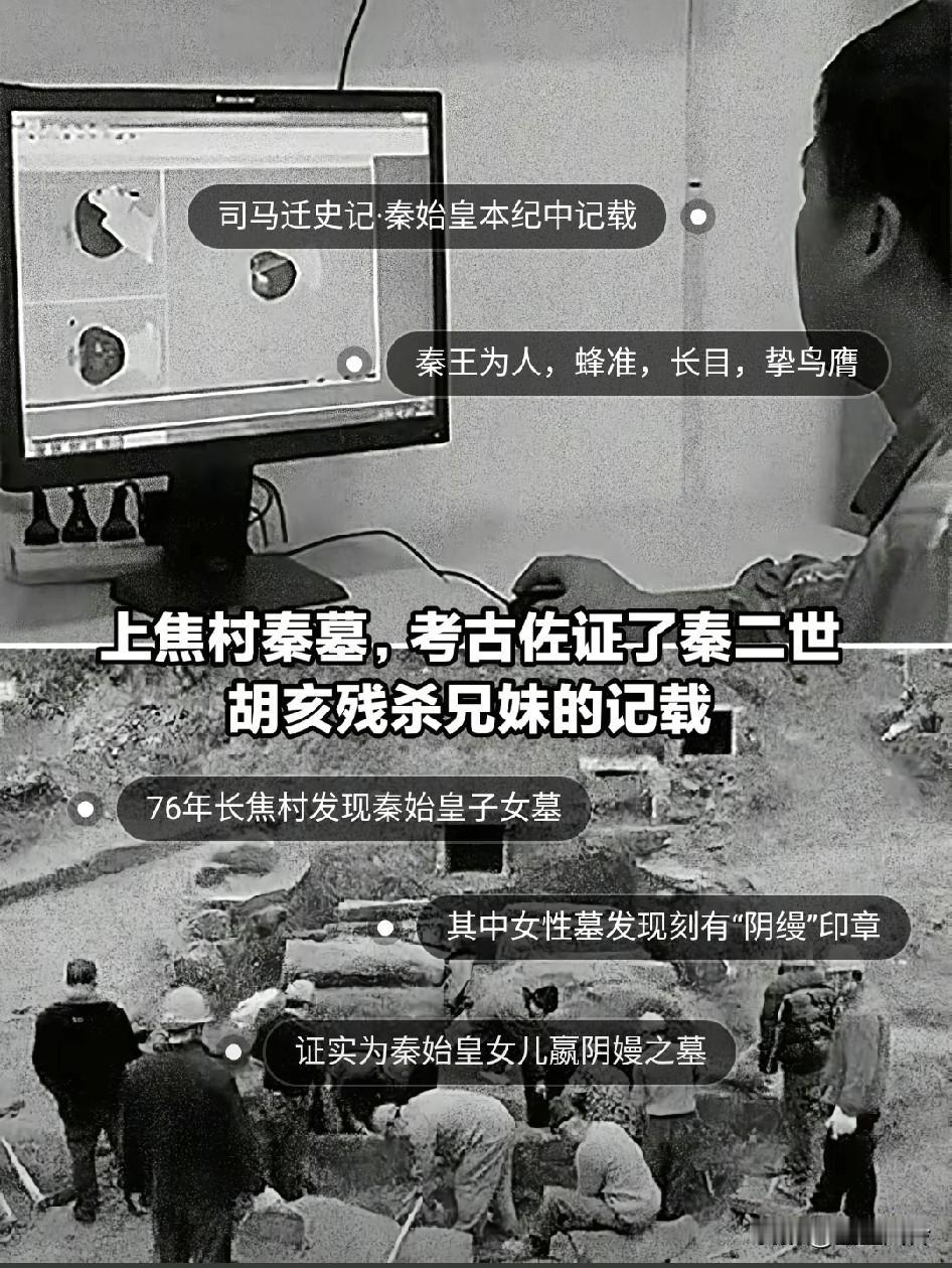 这个头骨是上焦村秦墓出土的,在考古和史学界被推断为秦二世杀害的秦始皇的子女,现在收藏在秦始皇帝陵博物院 这是受刑了。秦二世胡亥把他的二十多个兄弟姐妹全部残忍处死,除了自戕的两人,其他就没个身体囫囵的。头骨凹进去这么深,被活活砸死 古代史书里的大秦就是指古罗马地区,吕不韦应该是希腊商人,当时有大量希腊老兵追随亚历山大东征,大宛在罗马书中记载就是亚历山大城之一,秦始皇身高1.98米,蜂准就是高鼻梁,鸷鸟膺就是像鸟类胸肌发达,明显长相身材更像印欧人,墓葬使用青年石佣也是希腊墓葬习俗,当时东亚依然是活人陪葬