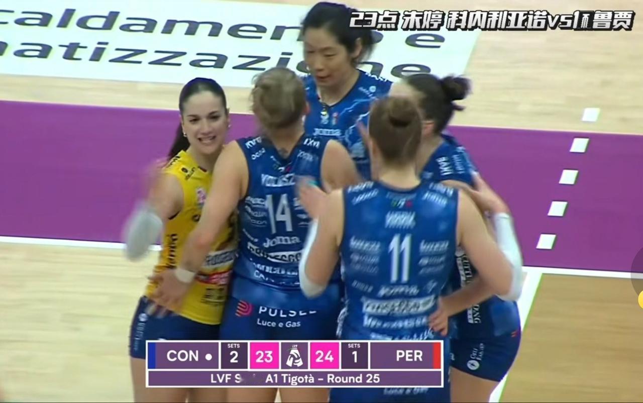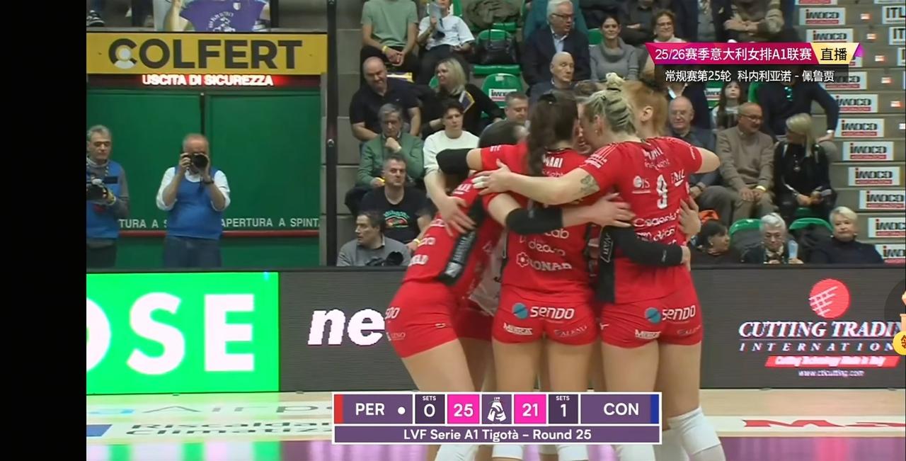 在今天凌晨结束的2025-2026赛季意甲女排联赛第25轮的一场比赛中,朱婷效力的科内利亚诺3:1战胜佩鲁贾继续领先积分榜,本场比赛是积分榜首和榜尾的对话,因对手实力较弱,科内首发尽谴替补出战,第一局科内替补队员发挥稳定,很快就以25:18拿下,但第二局佩鲁贾进行顽强的反击,以25:21获胜,之后科内拿下第三局,第四局科内曾落后比较多,主帅桑塔雷利二换三换上主力二传沃洛兹和主力接应哈克,渐渐把比分拉小,打到22:24时,桑塔雷利应该不想打决胜局,换上了朱婷,朱婷不愧是关键分女皇,上场后连得两分把比分追成24平,之后科内一鼓作气以26:24惊险获胜,以3:1战胜佩鲁贾,朱婷这两分真是太关键了也大涨士气啊[比心][比心][比心]