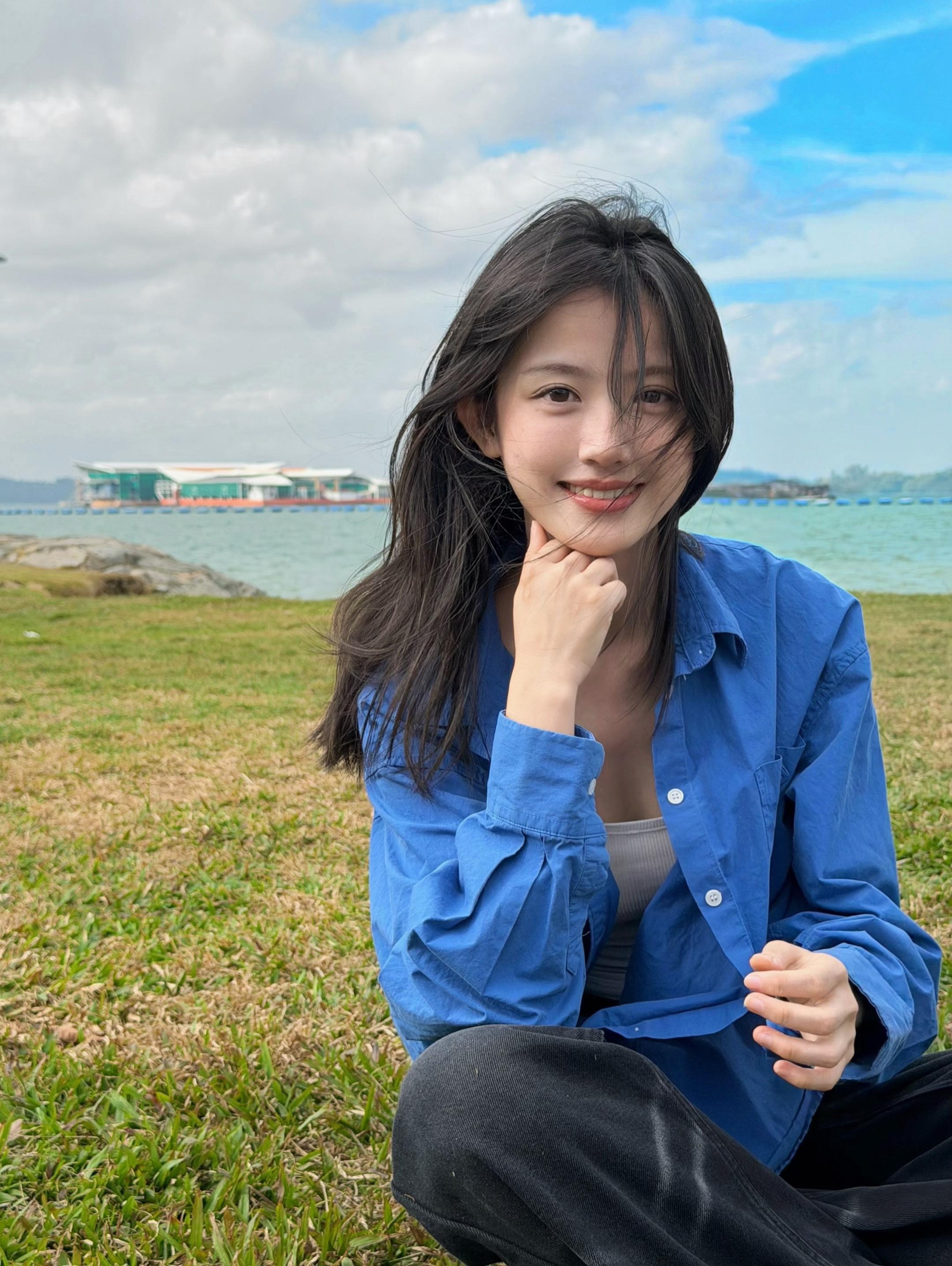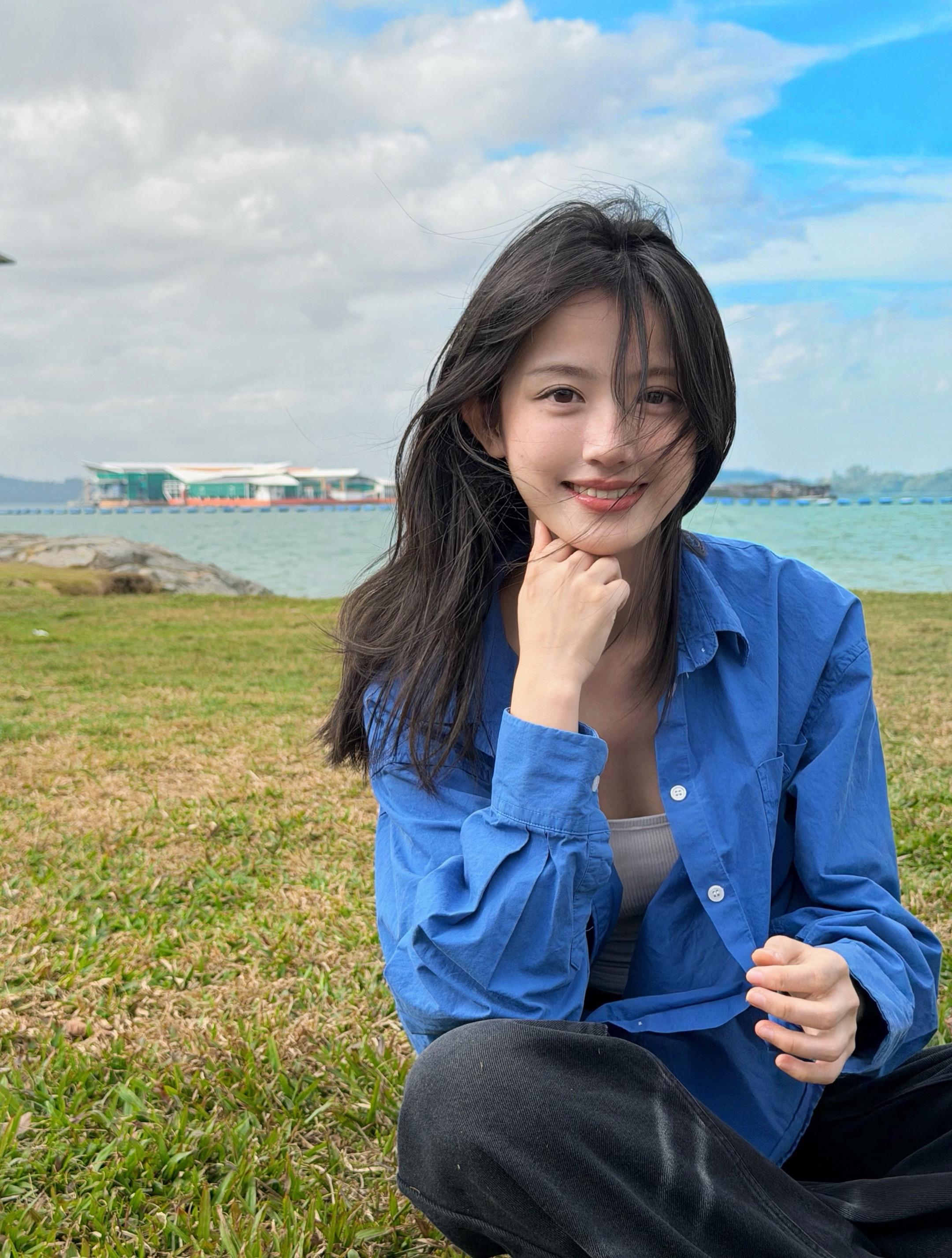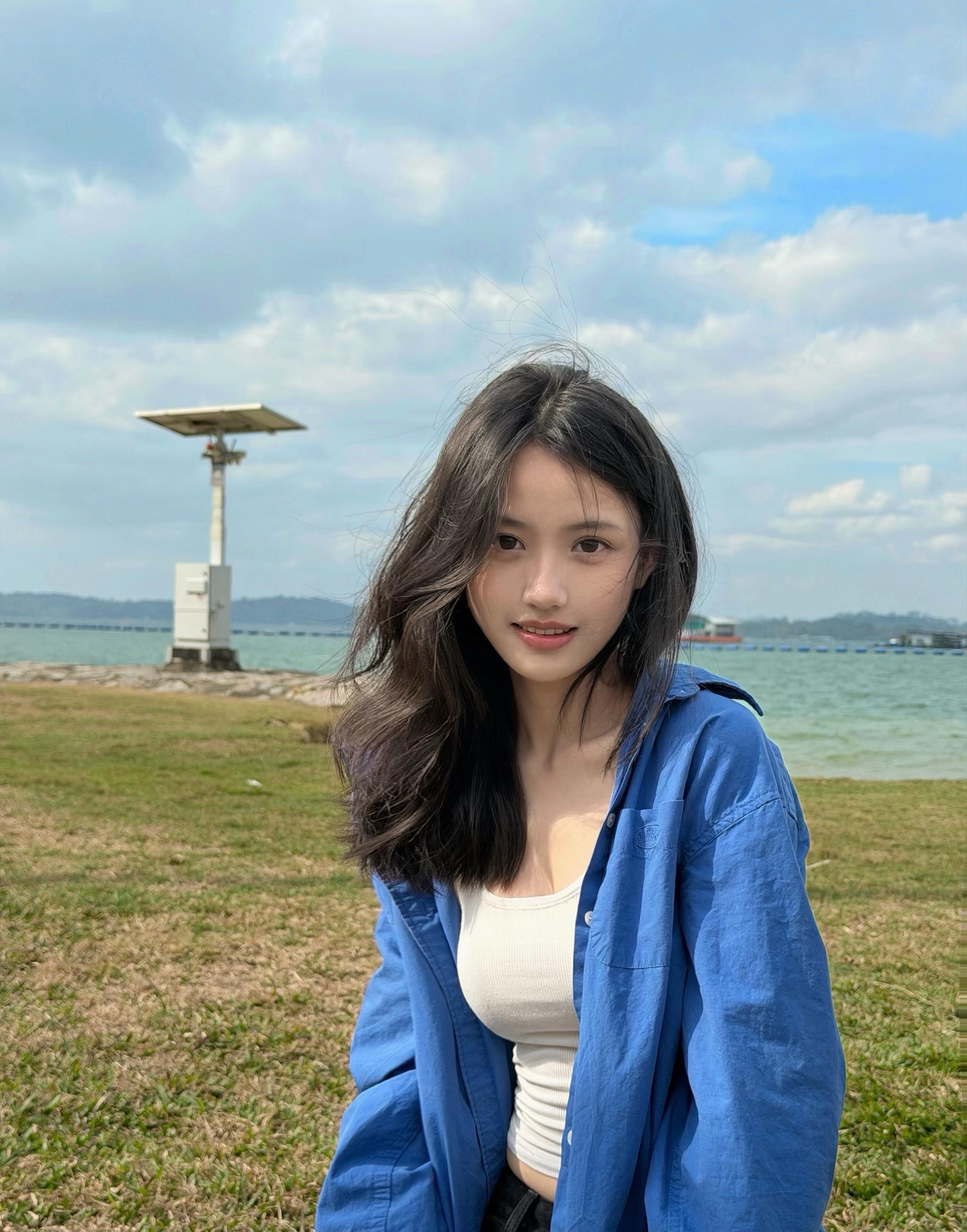 滩边红裙沐晴风海风裹着咸润的凉意,漫过沙滩细浪时,她正立在晴光里浅笑。