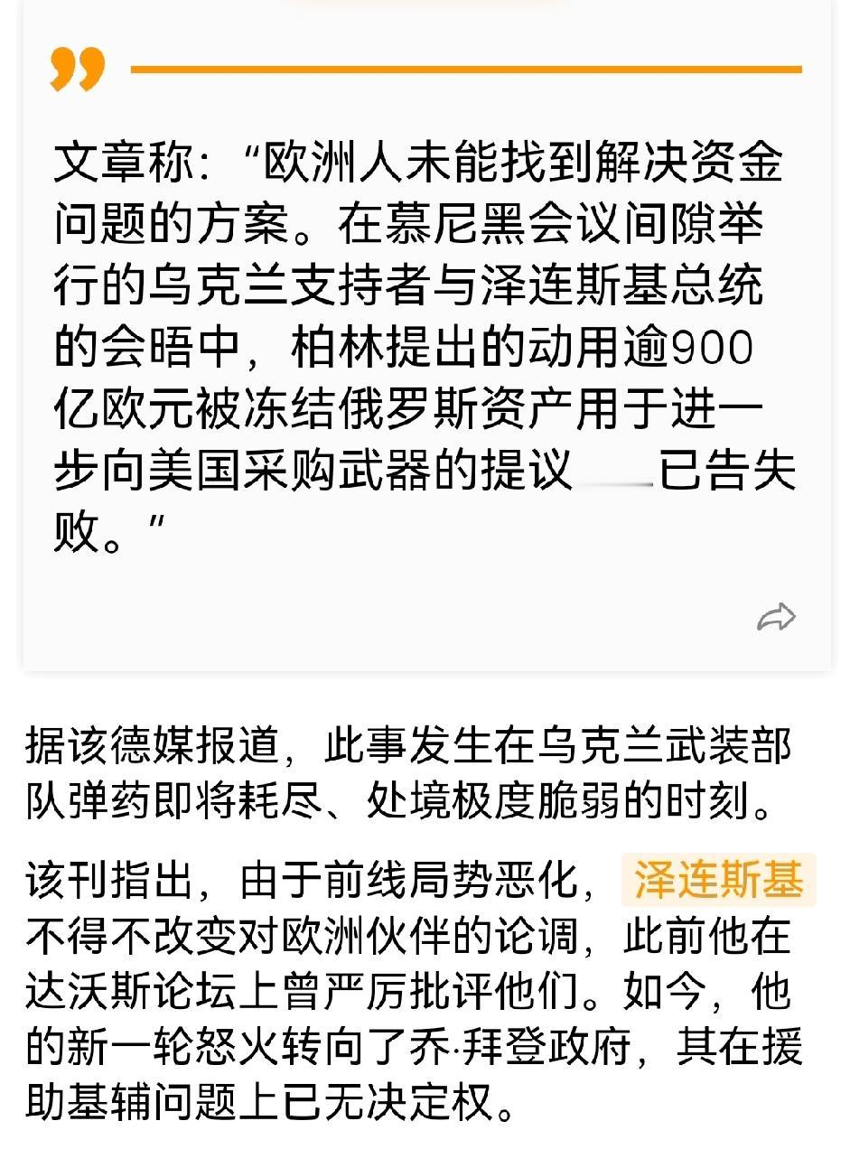 俄媒报道的, 是不是可以这样理解:德国提议用这900亿买美国武器给乌克兰,在欧盟没通过。 过去曾有欧盟成员国提议该900亿主要在欧盟内购买自产武器给乌克兰,不同意全部在美国购买。 如果真如此,鉴于美国目前所作所为,确该如此!俄罗斯也没什么值得幸灾乐祸。