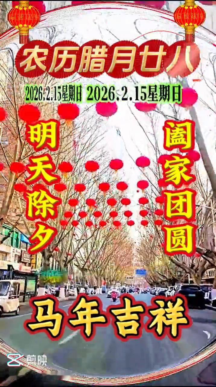 农历腊月廿八,2026.2.15星期日。 今天是农历腊月二十八,早上好了,明天就是除夕了。新年马上到了,打开的是祝福,收到的是好运,观看的是兴旺,品读的是吉祥。祝你把收获的黄金闪烁,把愉悦的心情放飞,把快乐的成功留下,把美好的愿望收藏。祝大家新年快乐,马年吉祥,阖家幸福,万事如意。