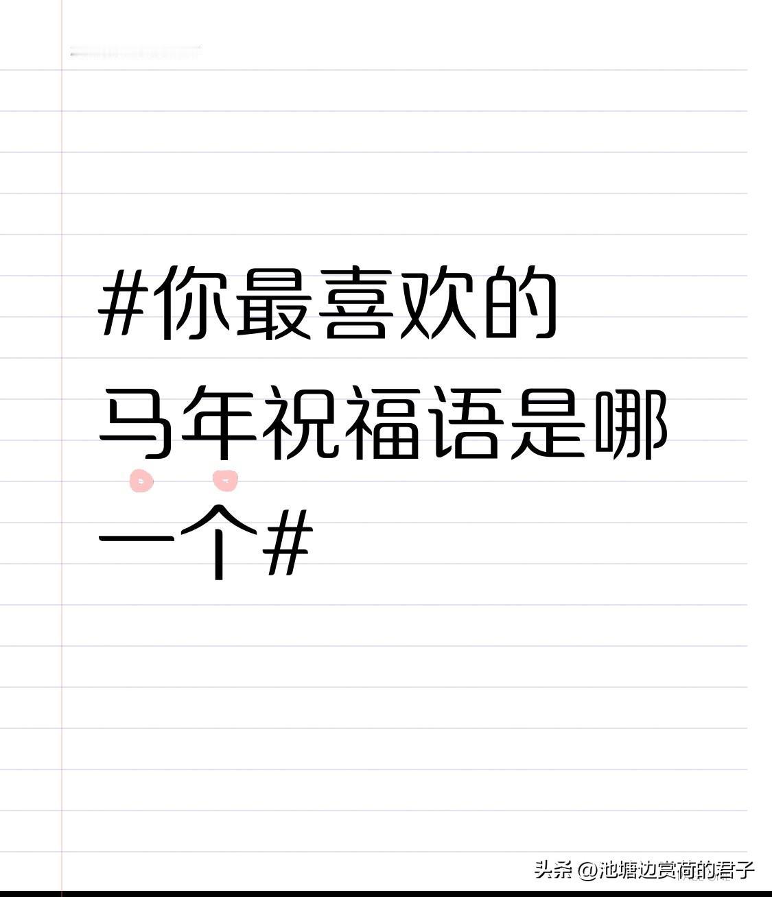 我最喜欢的马年祝福语是“马到成功”。这短短四个字,简单又有力量。在过去的马年,身边好多朋友都把它当成奋斗目标。就说我一哥们儿,那年创业,整天忙得晕头转向,办公室墙上就贴了“马到成功”四个大字。每次遇到困难,看到这四个字就又充满干劲。最后,他的公司真的步入正轨,业务越做越大。这四个字不仅是对未来的美好期许,还带着一种勇往直前、必能胜利的气势,让人听着就觉得有盼头,有希望。