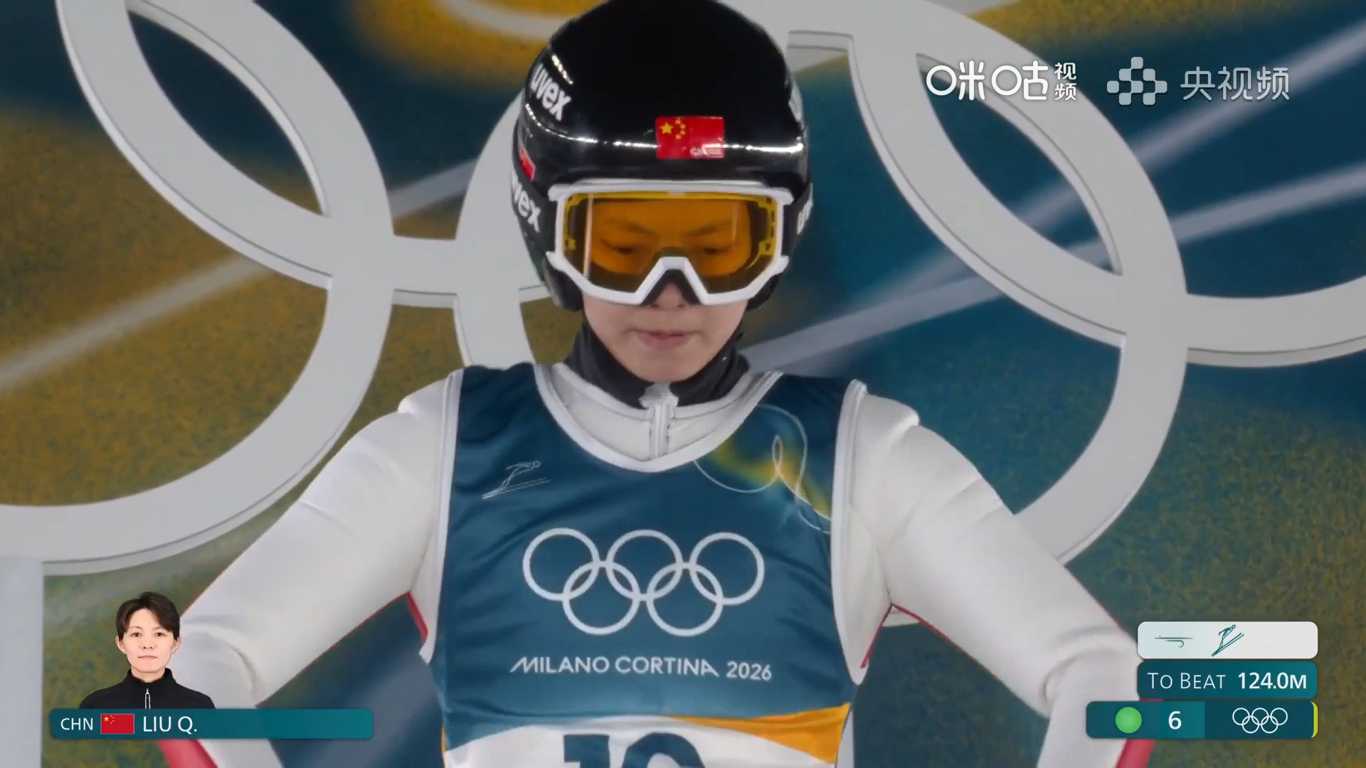 米兰冬奥跳台滑雪女子大跳台第一轮,🇨🇳刘奇首跳顺利完成,分数:108.2,暂列第2。