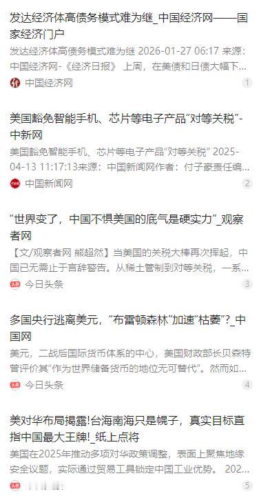 全世界现在都在赌中国和美国到底谁先扛不住。目前的状况是中国有货,美国有钱,但美国有钱买不到中国货,中国有货却卖不成钱。这场全球瞩目的经济拉锯战,表面看是供需失衡,实则是稀缺与价值的终极博弈。货和钱,哪个更硬?答案藏在市场逻辑和两国现状里。 麻烦看官老爷们右上角点击一下“关注”,既方便您进行讨论和分享,又能给您带来不一样的参与感,感谢您的支持! 当下的全球经济舞台,中美之间的拉锯战成了最受关注的焦点,表面看是简单的供需失衡,美国手握美元却买不到想要的中国货,中国有充足商品却没法顺畅变现,实则这场博弈的核心,是稀缺的实体产业优势与美元的价值霸权之间的终极较量。中国靠完整的制造业体系握有商品硬实力,美国凭美元霸权占据资金优势,可如今美国想用美元买中国核心商品和资源的路越走越窄,中国正稳步把商品优势转化为实打实的经济利益。 这场博弈里,美国的美元优势正不断被自身的经济问题削弱。截至 2025 年 9 月,国际金融协会的最新数据显示,美国联邦债务已经逼近 39 万亿美元,这样的债务规模让美债的 “安全性” 遭到了全球投资者的广泛质疑。美元的全球信誉也因此受到冲击,再叠加国内的通胀问题、供应链瓶颈等一系列麻烦,美国普通民众的生活直接受影响,生活必需品供应紧张,日常的生活成本也居高不下。 为了摆脱对华依赖,美国此前曾对大量中国商品加征高额关税,还耗费心力想要重建本土供应链。可这番操作的实际效果却不尽如人意,最终只能选择妥协。2025 年 4 月,美国海关与边境保护局正式发布公告,豁免了智能手机、电脑、芯片等电子产品的 “对等关税”,甚至已缴纳相关关税的还能申请退款。 美国的供应链重建计划,还面临着资金、技术等多重现实难题,想要在短期内找到能替代中国的供应链体系,基本没有实现的可能。要知道,美国市场上 73% 的智能手机、78% 的笔记本电脑都由中国生产,这些电子产品占中国对美出口总量的 20%-25%,短时间内根本无法找到合适的替代来源。 反观中国,能在这场博弈中站稳脚跟,靠的是实打实的产业硬实力。中国已经连续多年坐稳全球最大中间品出口国的位置,2023 年我国中间品出口就达 11.24 万亿元,占出口贸易的 47.3%,凭借完整的工业体系和健全的物流设施,成为全球中间品供应链的核心枢纽。 在关键的稀土领域,中国的优势更是独一档。2023 年美国地质调查局的报告显示,中国稀土氧化物年产量约 21 万吨,占全球矿山产量的 70%,更关键的是,中国把控着全球 92.3% 的稀土分离提纯产能,拥有从原矿到成品的全产业链能力,即便其他国家开采出稀土,也大多需要送到中国进行精炼。 除了稀土,在半导体领域中国也占据着重要位置,尤其是 28 纳米及以上的成熟制程领域,中国占据着全球相当规模的产能,在多个产业链的关键环节都掌握着主动权。这些核心的产业优势,让中国的商品优势有了坚实的支撑,也让美国想要摆脱对华供应链依赖的想法难以实现。 中美之间的这场经济拉锯战,还在全球范围内引发了连锁反应,最明显的就是全球 “去美元化” 的趋势越来越明显。曾经美元作为全球中心货币的地位看似无可撼动,可如今美元在全球外汇储备中的占比已跌至约 40%,创下了至少 20 年来的最低水平。 要知道,十年前美元在全球外汇储备中的占比还高达 66%,如今的大幅下滑,背后是各国对美元信誉的担忧,也是对中国实体产业优势的认可。从 2020 年到 2026 年,各国央行总共减持了约 3.2 万亿美元的美元资产,还有不少央行计划增持欧元、人民币等货币。 美国试图通过关税壁垒和出口管制来限制中国,可最终却发现,这些措施反而让自己陷入了困境。本土供应链重建遇阻,国内通胀居高不下,民众生活成本攀升,而中国则凭借着完整的制造业体系和关键领域的产业优势,稳步推进对外经贸合作,把商品优势转化为稳定的经济利益。 货和钱到底哪个更硬,这场全球瞩目的经济拉锯战,其实已经给出了答案。美元的价值终究需要依托实体商品来体现,而拥有稀缺的实体产业优势、掌握产业链关键环节,才是在全球经济博弈中最坚实的底气。美国手握美元,却买不到稀缺的核心商品,而中国拥有的商品优势,正随着全球产业链的发展不断凸显,这场博弈的胜负,其实早已藏在市场的底层逻辑里。