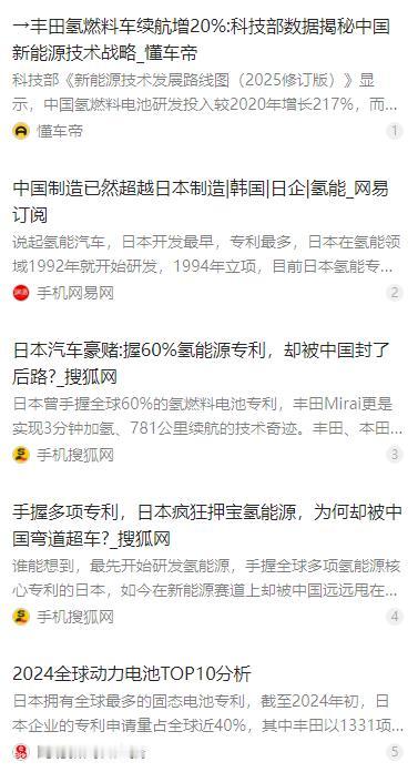 日本最先研究出了氢能电池,于是日本申请了上千个专利,独家生产,等着躺着挣钱,结果,比亚迪,特斯拉根本不用,而是用了磷酸铁锂电池,率先占领了电车市场,日本失去了先机!   麻烦看官老爷们右上角点击一下“关注”,方便您进行讨论和分享,感谢您的支持!   上世纪 90 年代,全球新能源汽车尚未形成明确赛道,丰田、本田、松下等日本行业巨头便率先启动氢燃料电池技术布局。企业长期投入资金与研发资源,围绕电堆、膜电极、储氢系统等核心环节攻关,同步推进燃料电池整车商业化开发,试图抢占未来能源转型的技术制高点。   2014 年 12 月,丰田推出全球首款量产氢燃料电池乘用车 Mirai,凭借加氢快、续航长的特性,被视为日本氢能路线的标志性成果。截至 2023 年,日本在氢能全产业链累计投入超 300 亿美元,用于技术研发、加氢站建设与产业链配套,试图打造完整的氢能出行生态。   根据全球专利统计数据,截至 2024 年底,日本氢能相关专利总量突破 5000 项,其中丰田与松下合计占据核心专利约半数份额,形成显著技术壁垒。日企原本希望凭借专利优势锁定行业标准,通过技术授权与独家生产获取长期收益,掌控新能源汽车的核心话语权。   与此同时,磷酸铁锂电池路线快速崛起,2022 至 2024 年,全球电动汽车用磷酸铁锂电池装车占比从 32% 升至 58%,成为民用市场主流选择。比亚迪、特斯拉等头部企业放弃氢能乘用车路线,依托磷酸铁锂的低成本、高安全与成熟配套,快速覆盖家用、出行等大众消费场景。   该电池体系供应链完善、制造成本可控、充电基建普及速度快,更贴合普通用户的购车预算与使用习惯,迅速打开全球增量市场。相比之下,氢能车售价偏高、加氢站数量稀少、使用成本居高不下,难以进入大众消费圈层。   市场表现直接拉开差距,截至 2025 年底,丰田 Mirai 全球累计销量约 2.8 万辆,远低于传统电动车与混动车型的规模。2025 年前 11 个月,Mirai 在美国市场仅售出 157 辆,同比大幅下滑,单一市场销量几乎可以忽略不计。   本田 2016 年推出的 Clarity Fuel Cell 氢能车型,因持续低迷的销量,已于 2021 年 8 月正式停产,该车型全球累计销量不足 2000 辆。日系头部车企的氢能乘用车项目,均陷入技术成熟但无人买单的尴尬局面,商业化进程严重不及预期。   日本企业长期深耕氢能电池,在材料、系统、工艺等环节积累大量专利,技术指标与成熟度处于全球第一梯队。但企业过度聚焦技术优势与专利布局,忽视民用市场对购置成本、使用便利性、基建覆盖的核心诉求,路线选择与大众需求脱节。   加氢站建设投入大、回本周期长,民间资本参与意愿低,全国站点数量远不及充电桩,用户补能体验极差。整车与燃料电池制造成本居高不下,难以下探到普通消费者可接受的价格区间,市场规模无法有效扩大。   这场技术路线博弈的结果,印证了产业发展的核心规律,技术领先不代表市场成功,落地必须与真实需求高度适配。日本过早锁定氢能赛道,放弃对锂电路线的大规模跟进,最终在全球民用电动车市场竞争中失去先发位置。而抓住磷酸铁锂机遇的企业,凭借贴合市场的产品与供应链,快速占据主流份额,改写了全球新能源汽车的竞争格局。