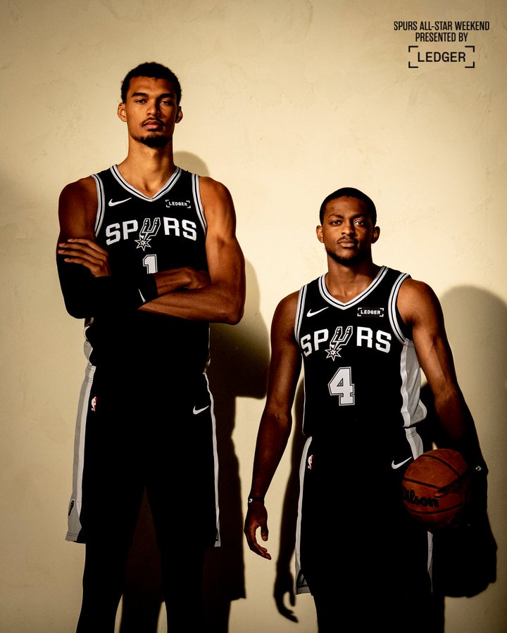 虎扑02月16日讯马刺官方社媒发布动态,晒出马刺球员维克托-文班亚马与达龙-福克斯的同框照片,为今日的全明星正赛预热。