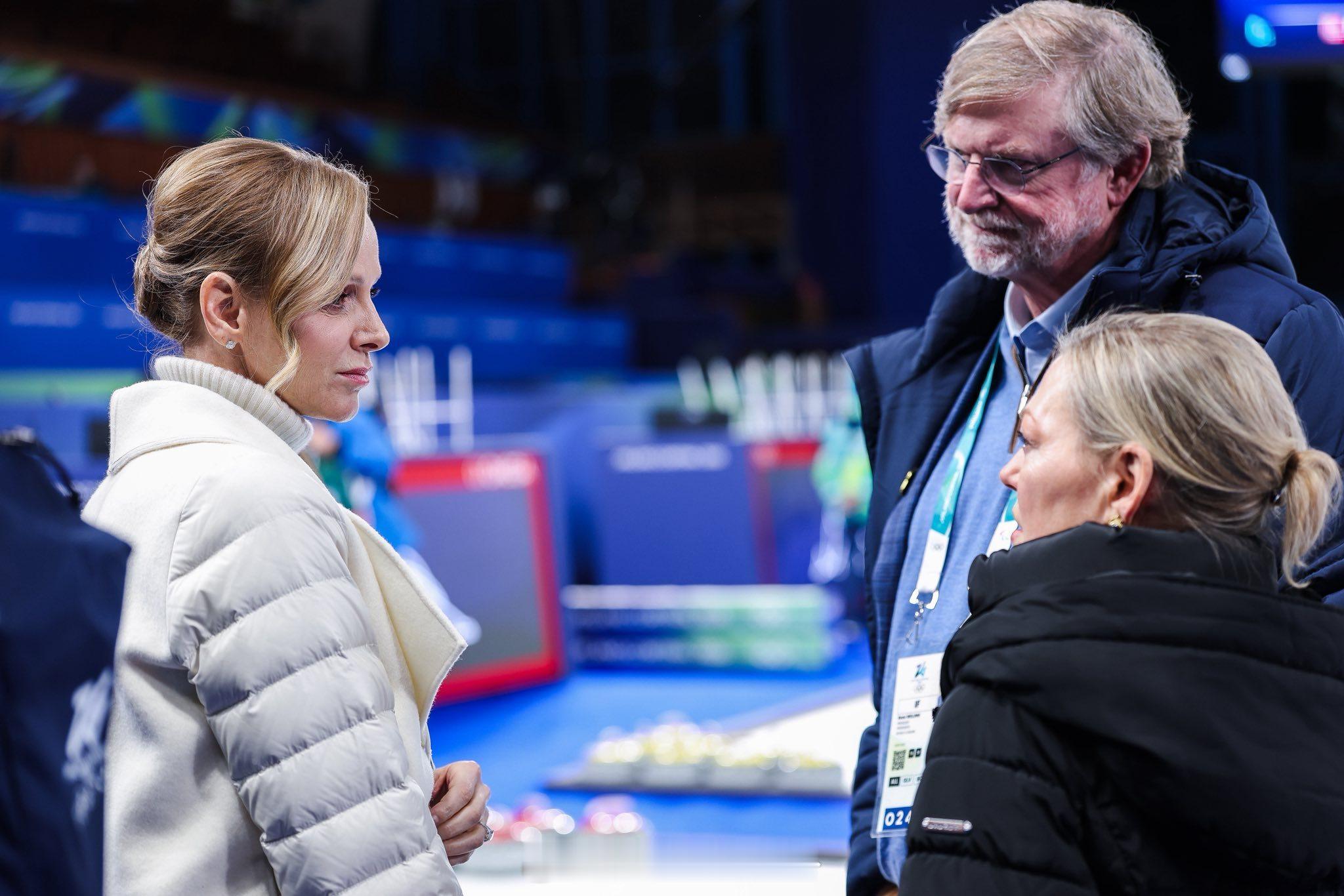 2.14 摩纳哥亲王阿尔贝二世、王妃夏琳带着龙凤胎在米兰冬奥看冰壶比赛