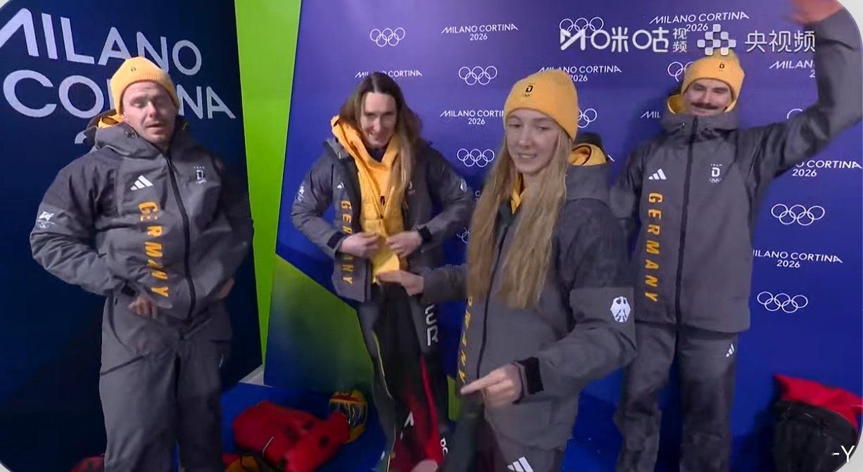 玛特又让德国人崩溃了英国女队员落后0.3S玛特上来直接追回0.47S由此 玛特成为冬季奥运会第一个钢架雪车双冠王这才是真正的“带飞女队友”啊