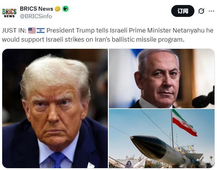 媒体消息:特朗普告知战犯内塔尼亚胡,他将支持以色列对伊朗弹道导弹项目的打击行动。