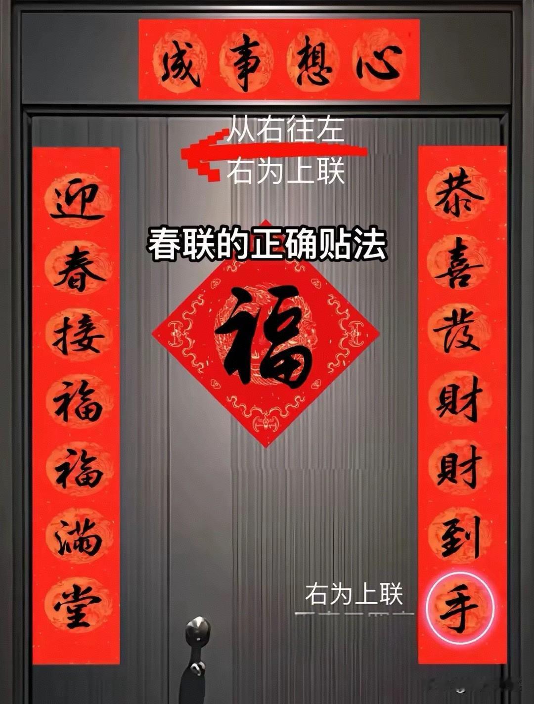 除夕之日,恰如“千门万户曈曈日,总把新桃换旧符”所描绘的,人们会选个良辰张贴春联,将期待与希望寄予这吉庆祥和的氛围之中。 贴春联的最佳时间 除夕上午 6:00–12:00。此时晨光初现,万物生机蓬勃,阳气最为旺盛,正适合辞旧迎新、迎福纳祥。 贴春联如何分上下联,正确做法如下: 若横批是左→右,那么左为上联,右为下联。比如横批“春满人间”(左 → 右),面对大门时,左边贴上联,右边贴下联。 若横批是右 → 左,即右为上联,左为下联。例如横批“意如祥吉”(右 → 左),面对大门时,右边贴上联,左边贴下联。 最简单口诀 横批左→右:上联在左。 横批右→左:上联在右。