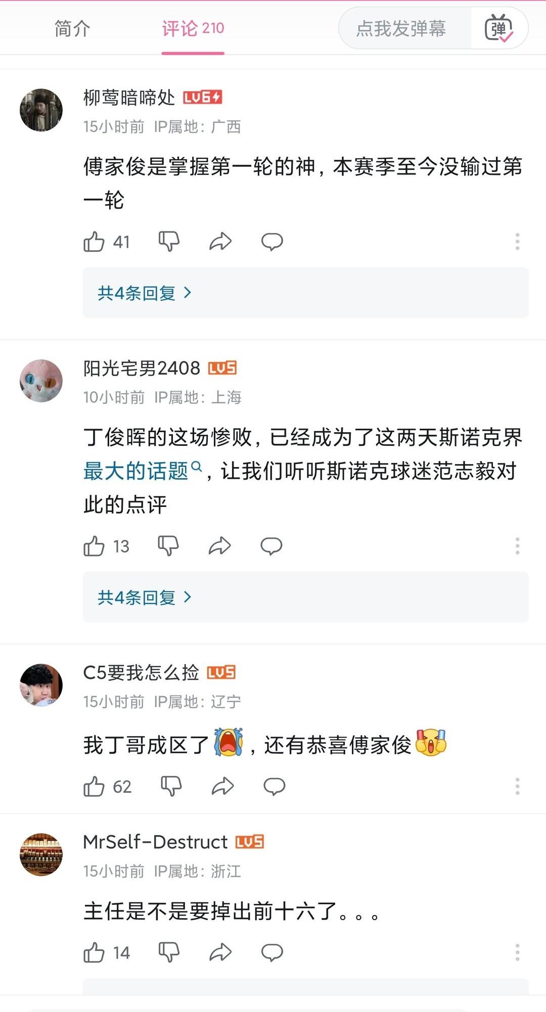 对丁俊晖来说现在赢球比输球更值得话题。所有人天天给他算排名,天天担心他掉出前16,真没这个必要。 丁俊晖的这场惨败(玉山公开赛资格赛2-5不敌傅家俊),已经成为了这两天斯诺克界最大的话题,一起来听听斯诺克球迷的点评。