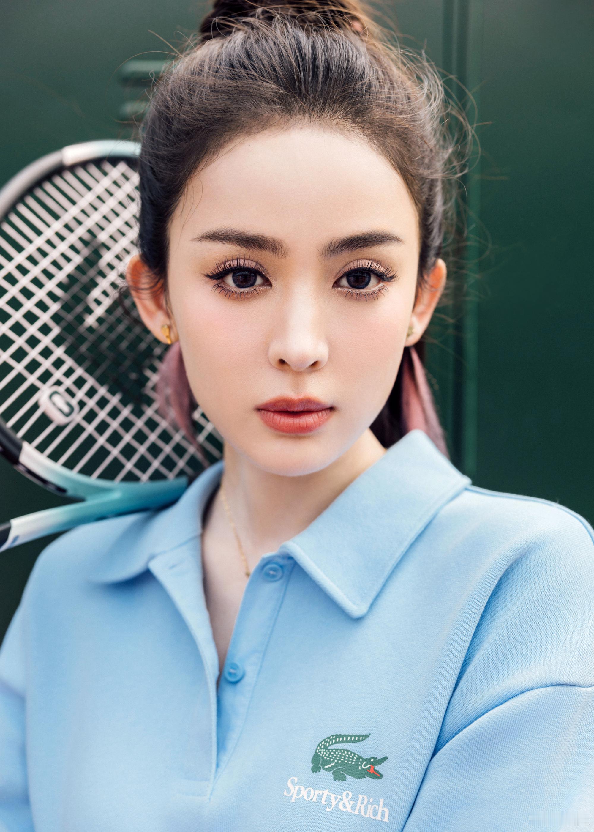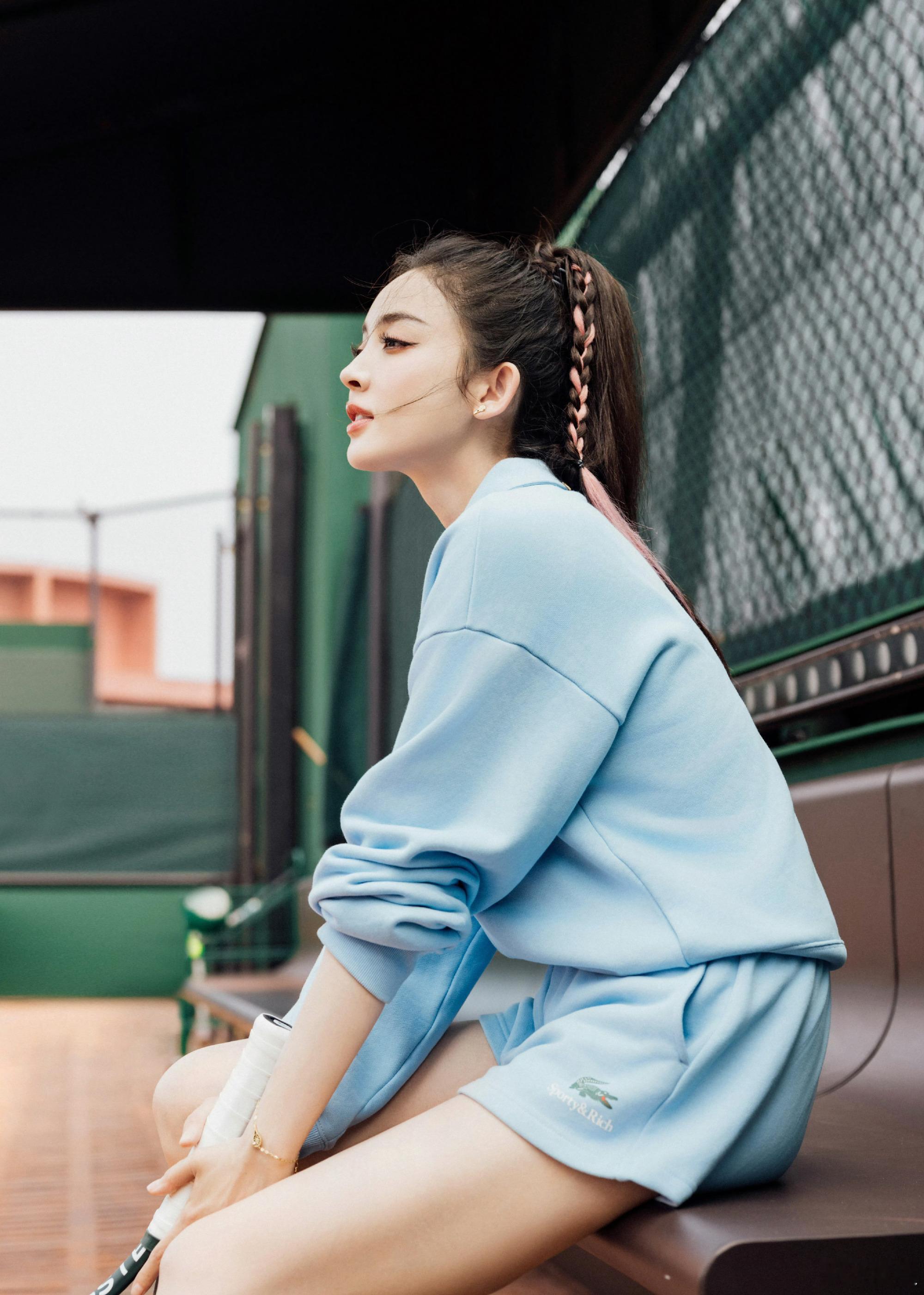 古力娜扎甜美一面,高马尾配蓝色运动套装,元气满满的网球少女。娜扎