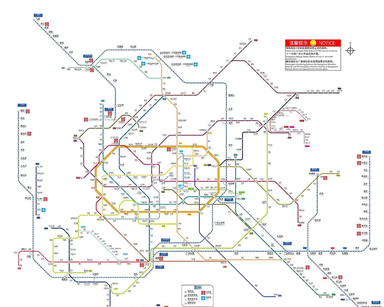 自制广州地铁线网示意图3.0。恭喜12号线赤岗站在春节前开通运营 地铁 轨道交通 广州 广州地铁
