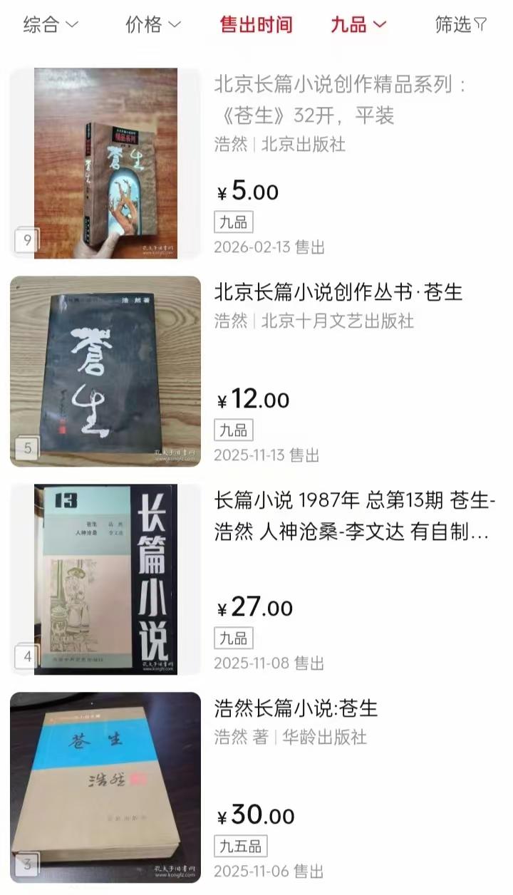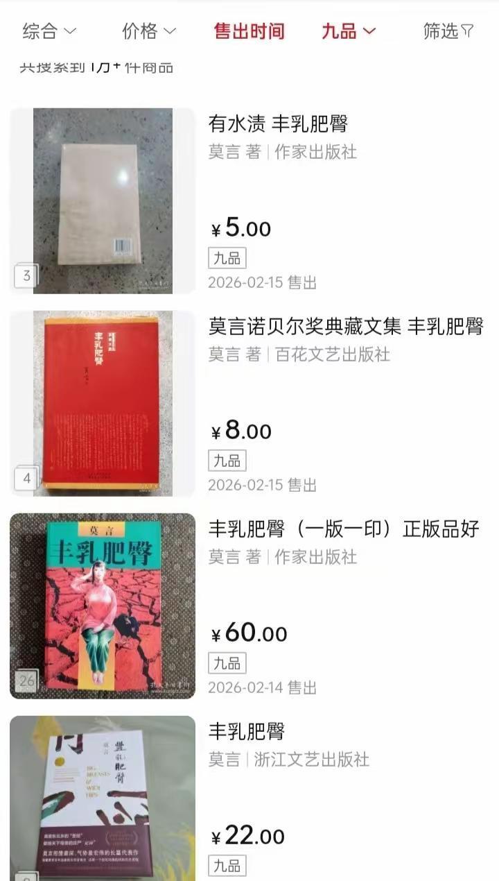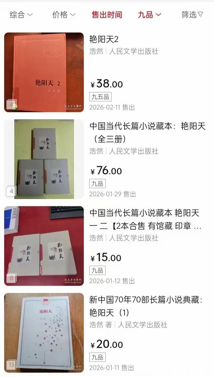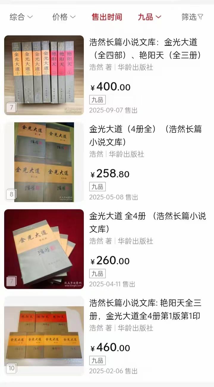 孔网二手书成交价曝光!莫言作品惊现0.01元“白送价”,浩然《金光大道》却卖到2