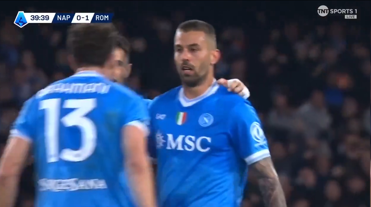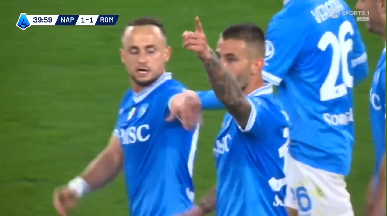 斯皮纳佐拉进球之后很激动,但马上就平静了下来,还向看台做了个手势…