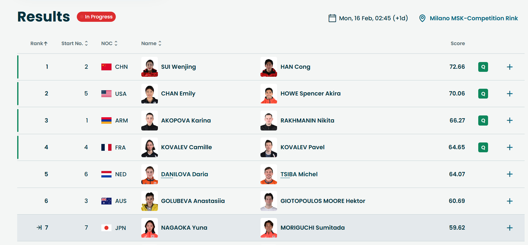 日本小双炸得太吓人了,目前倒一,不一定能进自由滑
