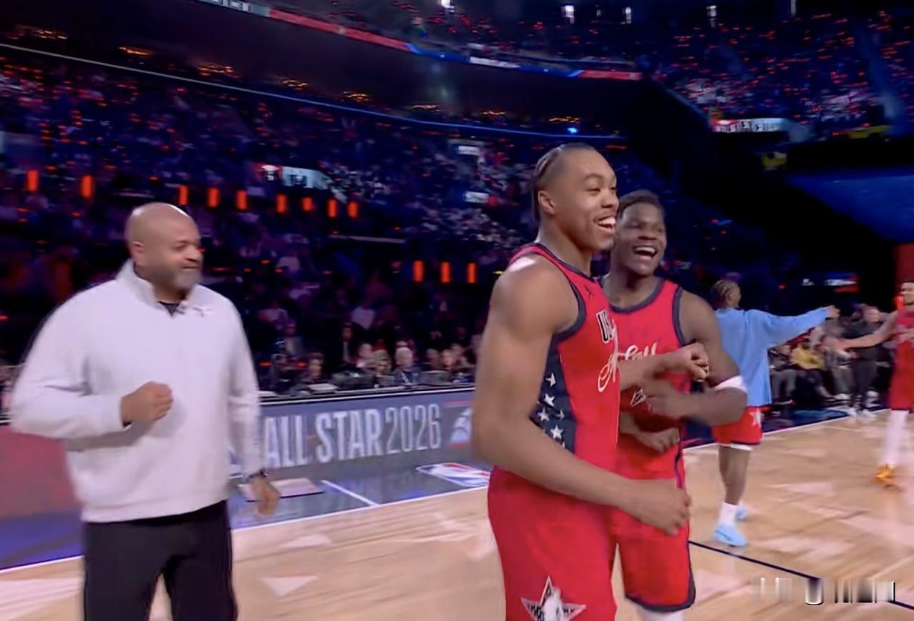 巴恩斯三分绝杀! 美国新星队战胜世界队! 美国新星队与世界队上演极致攻防对决,常规时间战至32-32平进入加时,加时采用先得5分制胜规则,悬念拉满。 关键时刻斯科蒂·巴恩斯接球出手,三分空心绝杀,帮助美国新星队以37-35锁定胜局,拿下全 本场世界队核心文班亚马表现抢眼,轰下14分6篮板3盖帽,攻防一体尽显天赋,遗憾未能带队取胜,赛后难掩失落;美国新星队爱德华兹贡献13分,布克送出5分4助攻,团队配合助力绝杀诞生。 这记绝杀让全明星首战就迎来高潮,也为2026NBA全明星周末拉开超燃序幕! 2026nba全明星