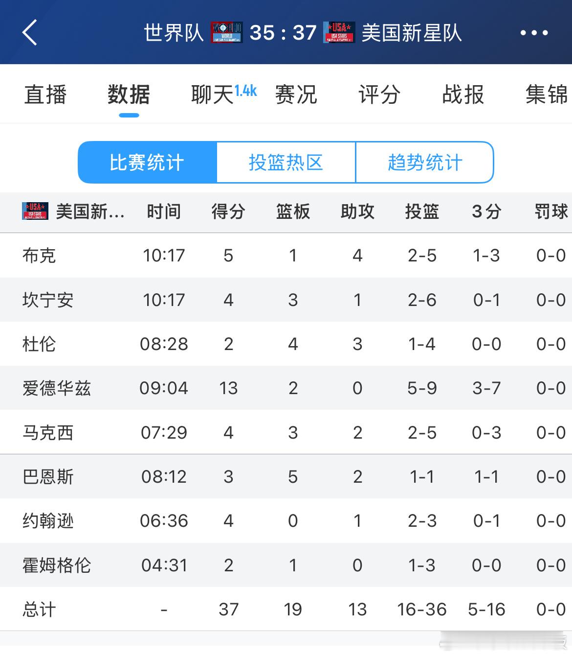 目前最高分:文班亚马14分,爱德华兹13分2026nba全明星