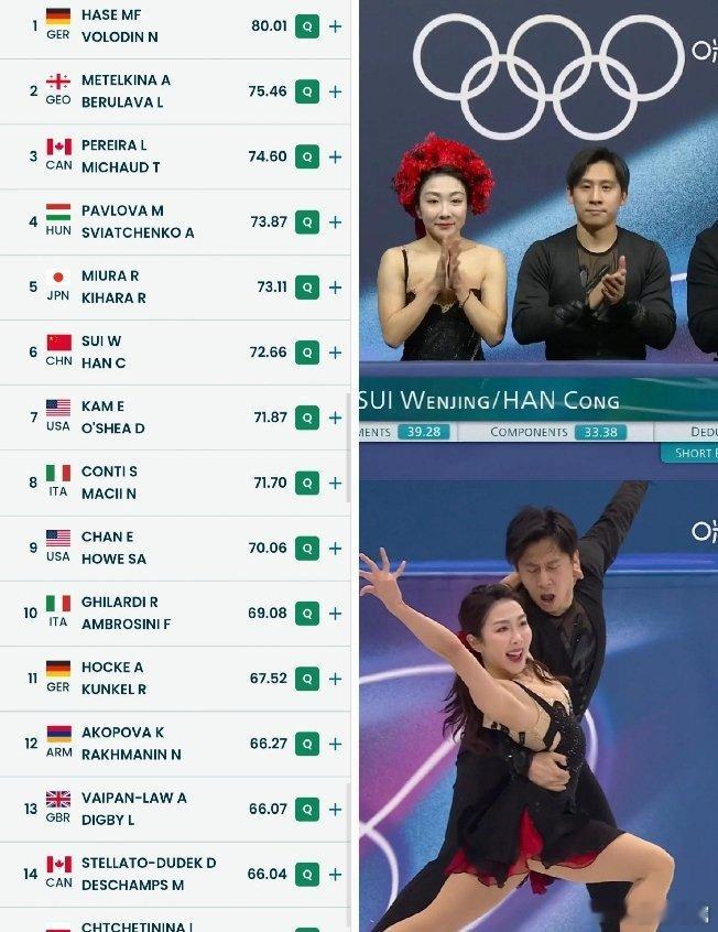 隋文静韩聪短节目72.66分米兰冬奥会双人滑短节目,隋文静韩聪第二位出战,顶住压力拿下72.66分!相较于团体赛,葱桶组合的表现更显从容,动作完成度与艺术表现力全面升级。这就是老将的调整能力,静候自由滑的全力冲刺v观冬奥会全民聊冬奥体育大拜年