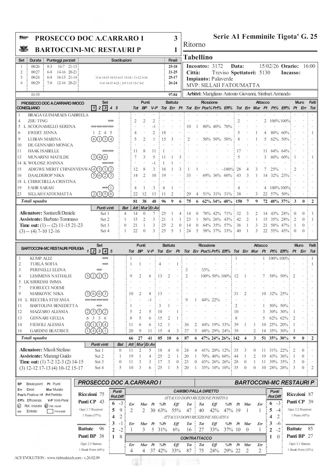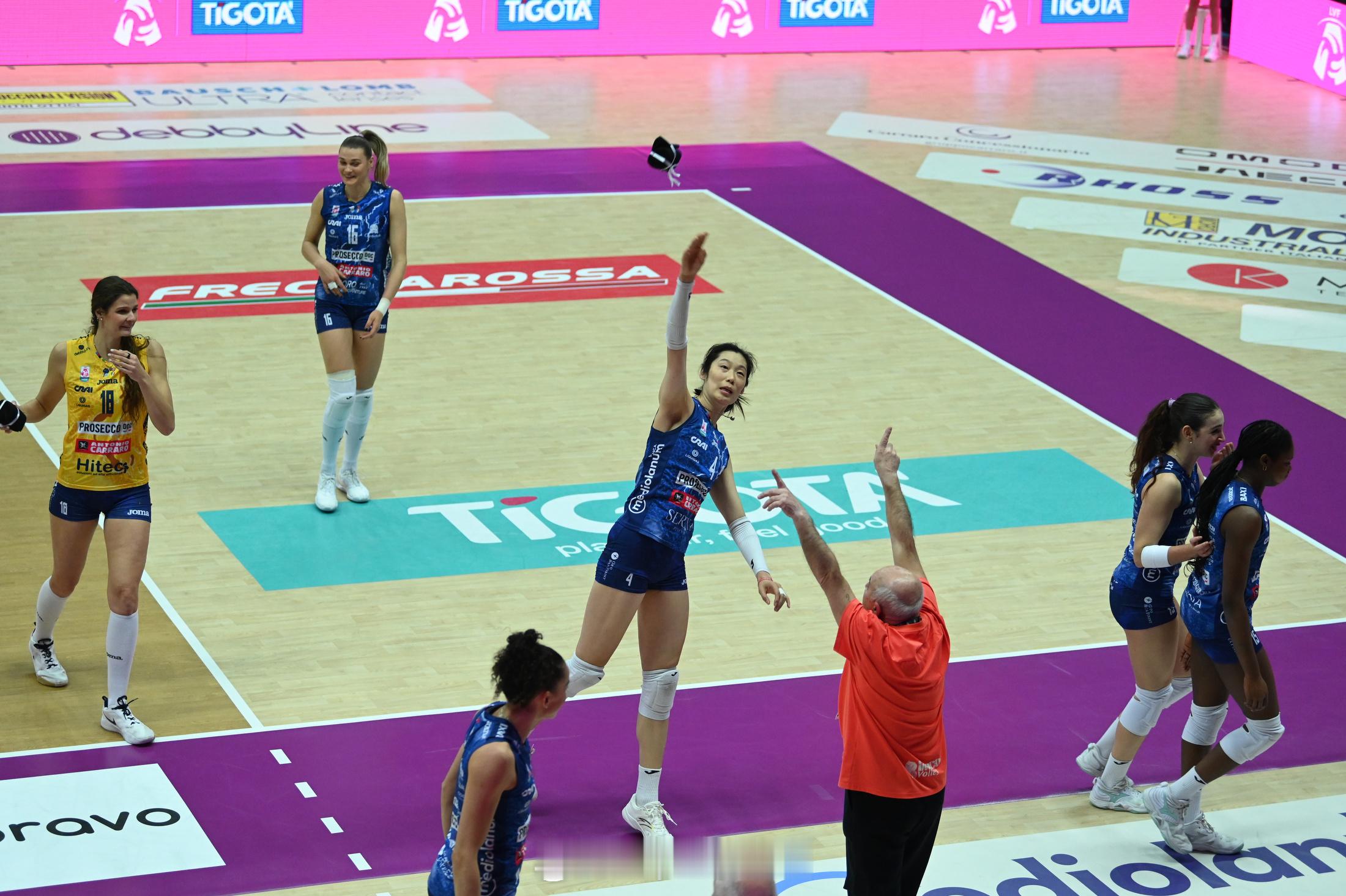 【意甲女排科内小遇麻烦3-1送佩鲁贾提前降级 朱婷替补2分】国际排坛战报速递中国排球留洋动态 2月15日特雷维索,意甲女排第25轮,卫冕冠军科内利亚诺替补主打小遇麻烦,主场3-1(25-18/21-25/25-17/26-24)击败顽强的副班长佩鲁贾,后者提前一轮降级。MVP西拉22分、达尔德罗普14分、阿迪维12分、哈克后两局替补出战得到11分、朱婷最后一局替补上场2扣2中得到2分、加比和德吉纳罗休战,加尔迪尼20分、费索利11分、马尔科维奇10分。