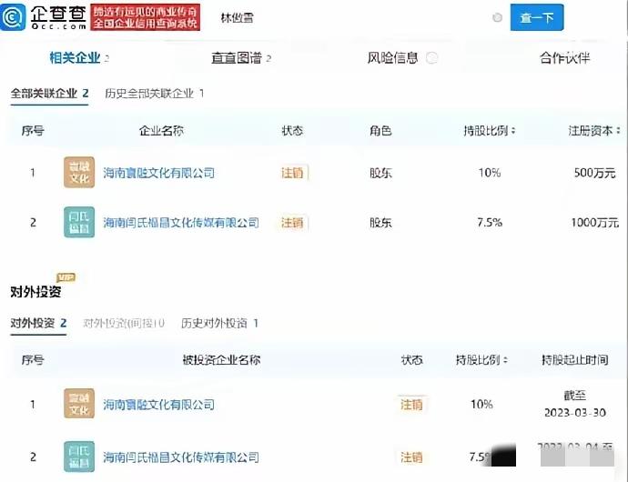 闫学晶,深夜冲上热搜! 2月15日,除夕前一晚,闫学晶却连夜冲上了热搜,原来这次是因为她的继女林傲雪,其商业版图被网友扒出,名下两家公司已注销的消息再次引发热议。 林傲雪是闫学晶前夫林越的女儿,也是大家熟知的继女,她毕业于中央戏剧学院表演系,早年也接触过影视表演,后来慢慢淡出荧幕,专心做幕后和文化相关产业。她的商业布局主要集中在文化传媒领域,和家人的企业也有正常的关联合作,这也是不少艺人家庭常见的产业规划方式。网友查到的信息显示,此次注销的两家公司均注册在海南,成立于2025年,主营影视文化宣传、活动策划这类业务,注册资本并不算高。 很多网友有个误区,以为林傲雪只有这两家公司,实际并非如此。她在吉林还有两家文化传媒公司正常运营,她也担任法定代表人、总经理等职务,日常经营都在正常进行。海南这两家公司注销,并不是单独的个例,而是闫学晶一家近期整体调整商业布局的一部分,同期闫学晶本人、儿子林傲霏名下也有公司注销或股权变更,属于正常的商业优化操作。 按照正规的市场规则,公司注销本就是合法的市场退出方式,只要完成清算、结清税务和相关债务,走正规流程办理,就只是正常的经营决策,和违法违规没有任何关系。不少网友一看到公司注销就往负面猜测,还把这件事和之前的争议强行联系在一起,这种猜测完全没有事实依据,也忽略了最基本的商业常识。 闫学晶凭借接地气的荧幕形象被很多观众喜爱,这几年跨界直播、拓展家族产业,受到的关注变多,争议也随之而来。网友对公众人物多一份关注和监督很正常,但家人的正常商业行为,被过度放大甚至恶意解读,就已经超出了合理讨论的范围。 林傲雪作为成年人,完全有权利独立处理个人的商业事务,目前没有任何官方信息显示她的操作存在违规问题。部分网友只凭一份工商变更信息就编造不实说法,不仅会误导其他人,也会给当事人带来不必要的困扰。明星家人同样有正常经营和生活的权利,不该被无依据地抹黑。 这场热搜说到底,就是舆论情绪的过度延伸。关注公众人物可以,但讨论一定要建立在事实和法律的基础上,不能因为对艺人有不同看法,就牵连到家人,更不能把合法的商业行为歪曲成负面新闻。 网络发言也要守住底线,有一分证据说一分话,随意揣测、传播不实说法,既不符合平台规则,也会伤害到无辜的人。公司合法注销就是正常的商业调整,没有所谓的内幕,也不值得过度炒作。 各位读者你们怎么看?欢迎在评论区讨论。