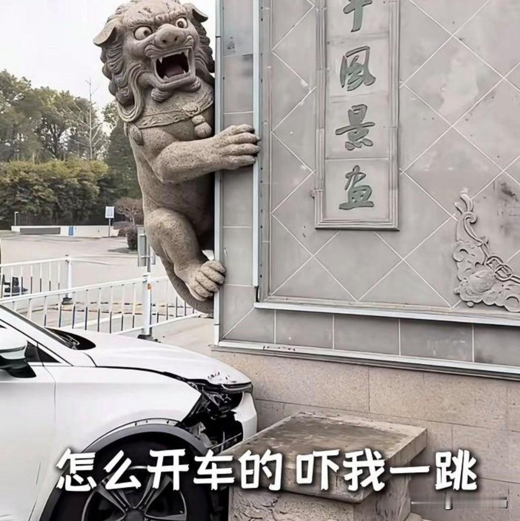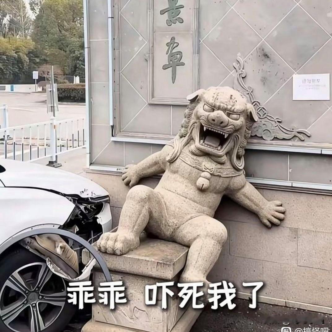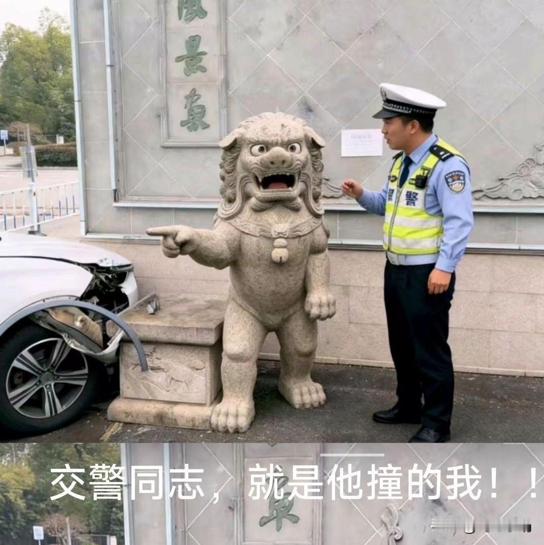 一只石狮子被车撞了,接下来就被P图高人,把狮子P成一连串故事了。 太有才了。