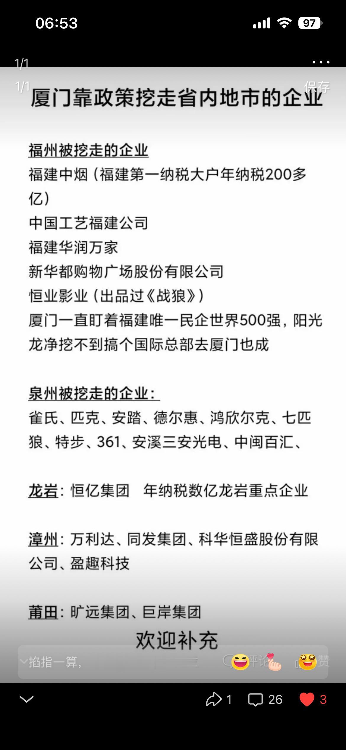 厦门财收,为什么 福建最多 1、作为计划单列市,厦门,基本没有贡献省,却收着方方面面的 各种省级补贴 四十年。 2、厦门 可以利用特区的减免税政策,吸血 福建省内的各城市国企,民企,去厦门,以增加其地方财收。 综上所述,厦门的财收,很大一部分,不是厦门市本级,自己赚的。
