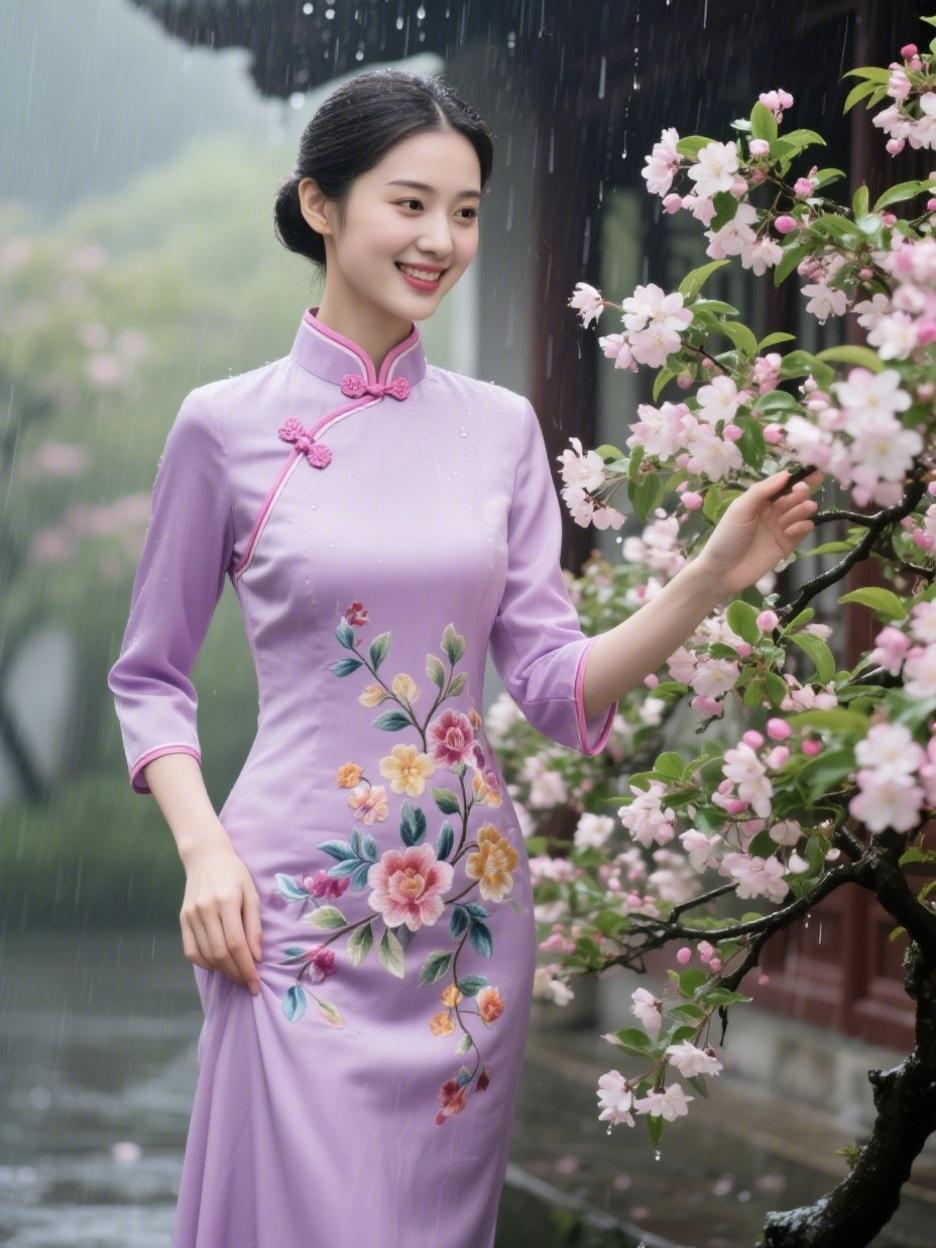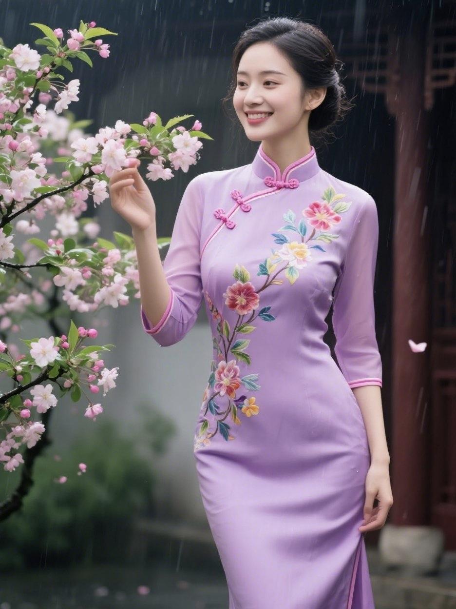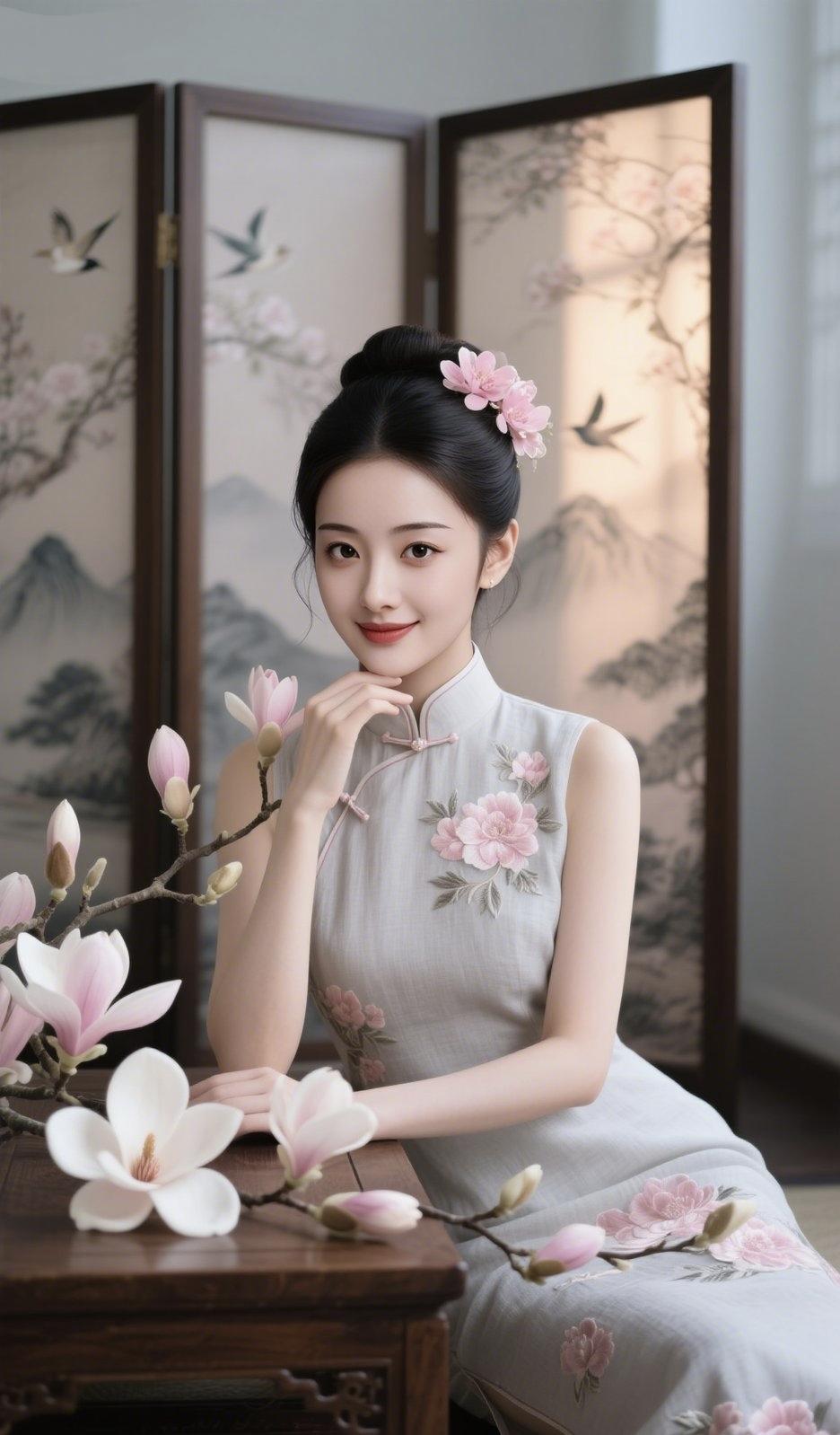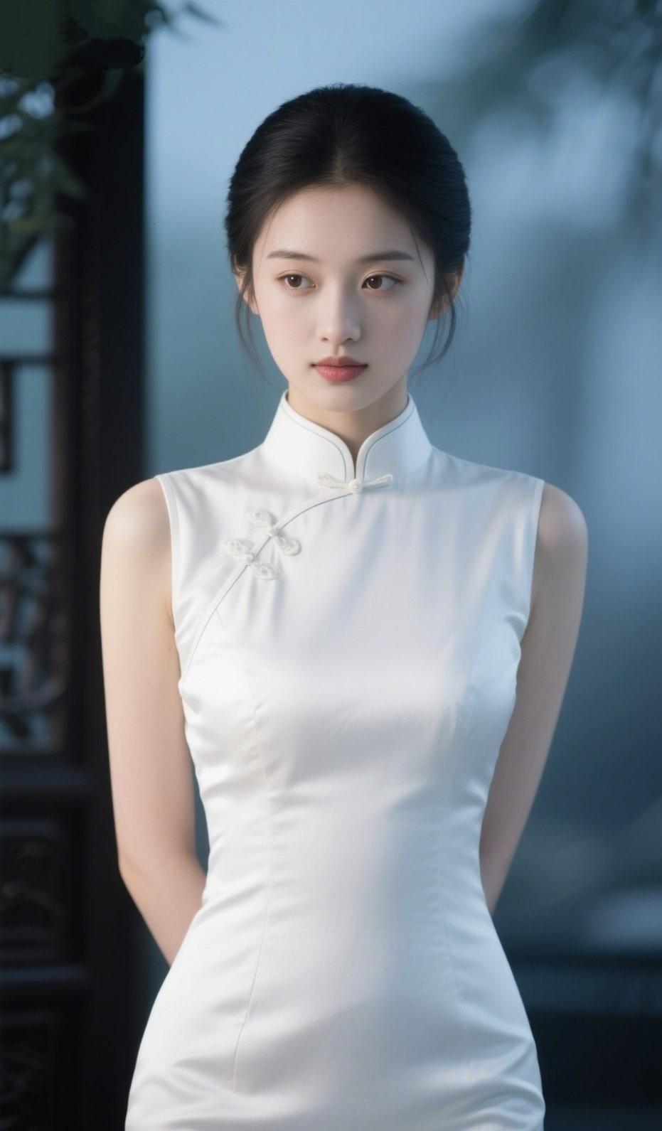 《旗袍承意,岁月留情》 一剪云绫裁作骨,半弯月色入襟怀 针脚藏尽江南雨,盘扣轻衔古韵来 素色凝香风细细,青花染梦影徘徊 腰身慢裹千秋意,裙摆轻摇万种态 旧巷流光穿壁过,新妆浅笑映妆台 一衣承得东方韵,岁月留情不曾改 流年漫卷胭脂色,往事轻萦碧玉钗 人间多少温柔事,尽在旗袍脉脉开 旗袍古典身韵 江南旗袍故事感 旗袍水墨风 江南墨旗袍 温柔盘扣 旗袍船韵 复古裙韵