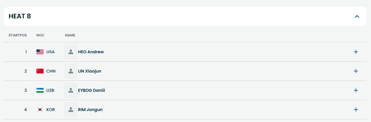 刘少昂将位于4组1道出发,同组的对手有两届世锦赛该项目银牌得主、哈萨克斯坦老将丹尼斯-尼基沙。