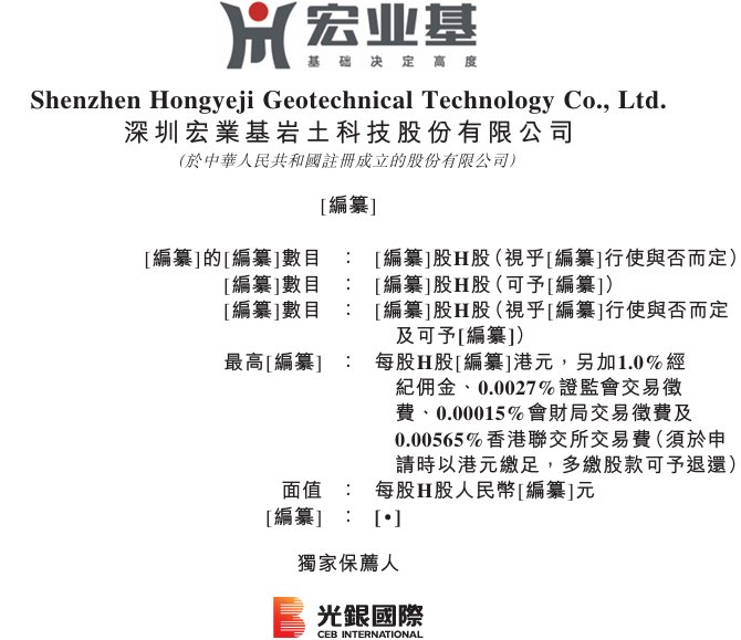 据港交所2月15日披露,深圳宏业基岩土科技股份有限公司(简称:宏业基)向港交所主板递交上市申请书,光银国际为其独家保荐人。这是该公司第二次递表港交所。