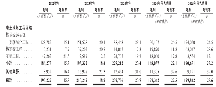 根据弗若斯特沙利文报告,该公司(i)按2024年营收计,是华南地区最大的非国有企业岩土工程企业;(ii)按2024年营收计,在参与华南地区大型岩土工程项目的非国有企业中排名第一,市场份额为1.9%;及(iii)该公司于2024年位列中国基础施工企业10强(非国有)第二名。