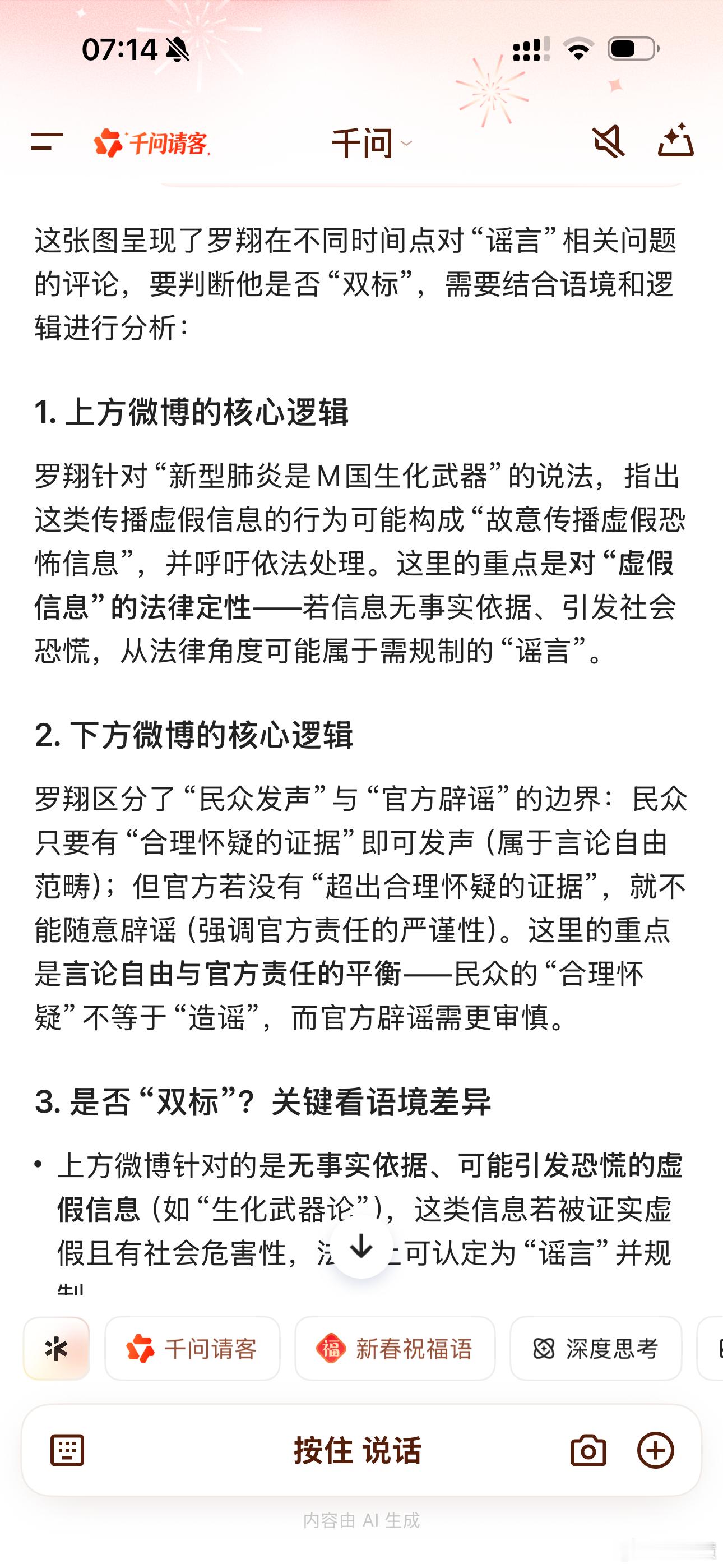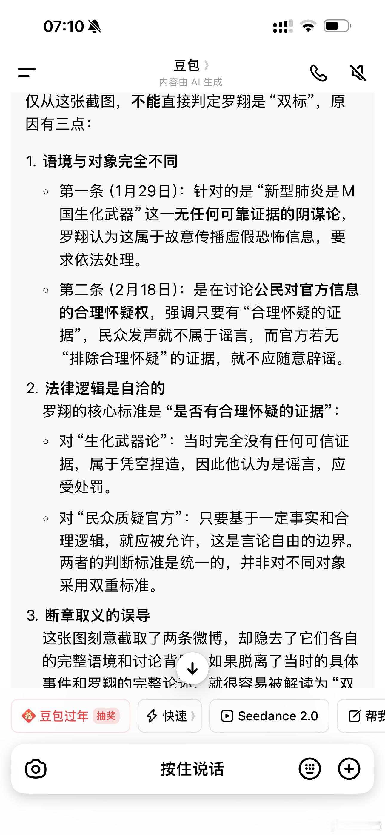 那么,到底从这张图是否就能断定罗翔是双标呢?我求救了豆包和千问,看看这两位的回答!