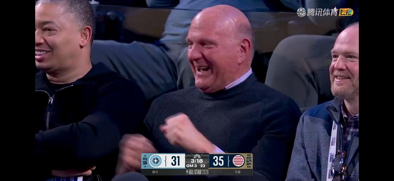 总裁亲点———小卡单节31分(真打)等于常规赛多少? 开局就连得8分,球队落后后又连得11分,7中7、3分5投全中。 急的文班亲自防守,可惜也被骗犯规、还被小卡抢断暴扣; 文班3分2连击后,又是他2+1申京,3.5秒还中关键3分! 真打单节31分———这绝对是全明星历史上最伟大的表演!!! 鲍尔默高兴惨了: 来,你想要几年合同?
