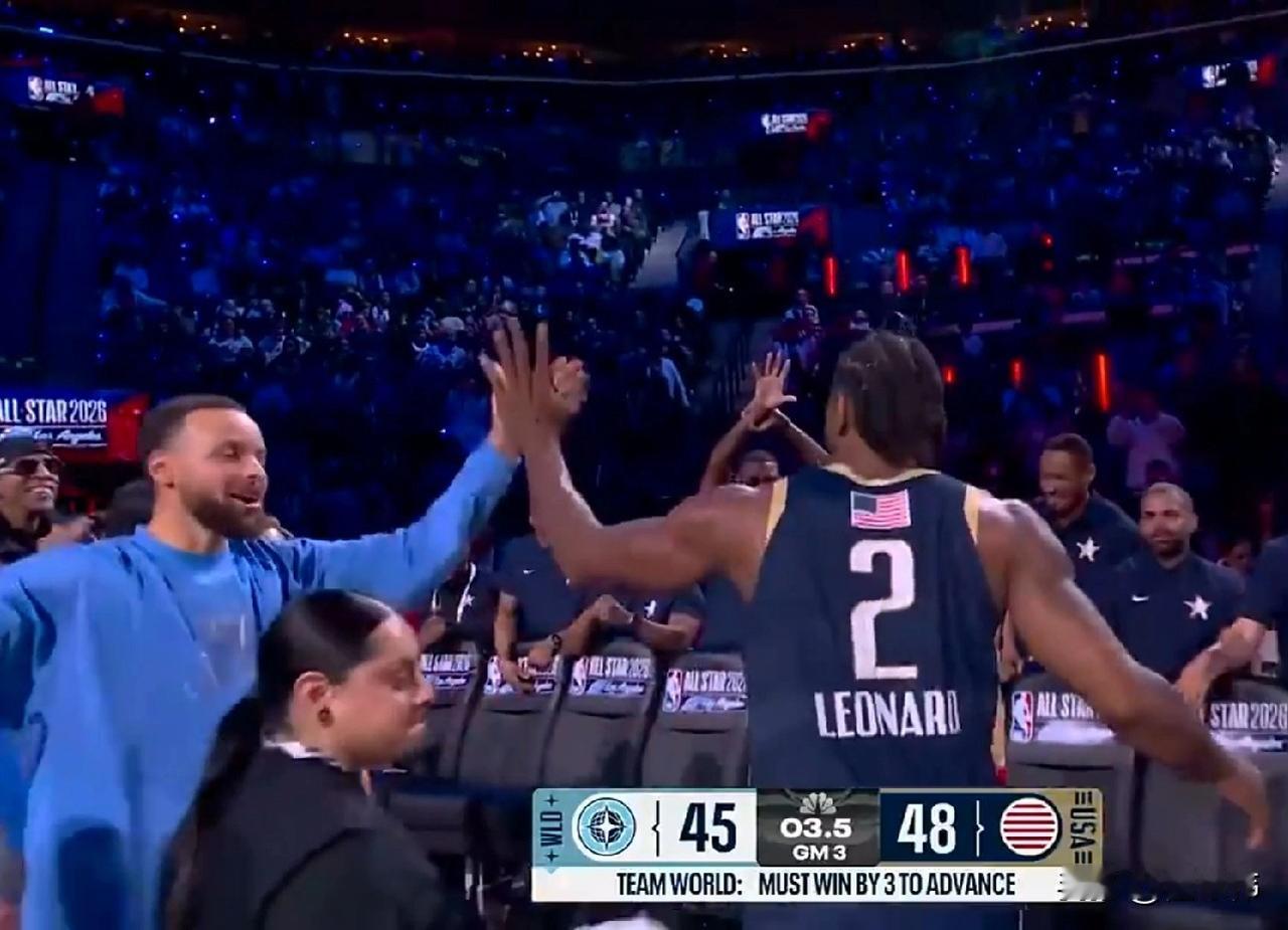 太强了!库里谈伦纳德: “这是极致的表现。” “他连续得分。” “最后命中关键三分。” “帮助我们球队赢下比赛。” “他是真正的MVP。” 伦纳德开启战神卡模式,连续命中三分,最终帮助美国队战胜世界队! 这小卡,认真起来,真的是强到可怕! 梦回2019年夺冠时期的卡哇伊伦纳德,在最困难的时候,总会挺身而出! 今天的伦纳德,真是重回巅峰了! 伦纳德的出色表现,得到了库里最大的认可! 这也是对伦纳德实力的一种肯定! 在伦纳德贡献极致表演后,最开心的那个人,是库里! 伦纳德