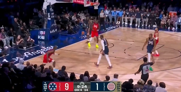 在今天进行的美国条纹队和世界队的全明星正赛中,发生了让人哭笑不得的一幕。当时快船
